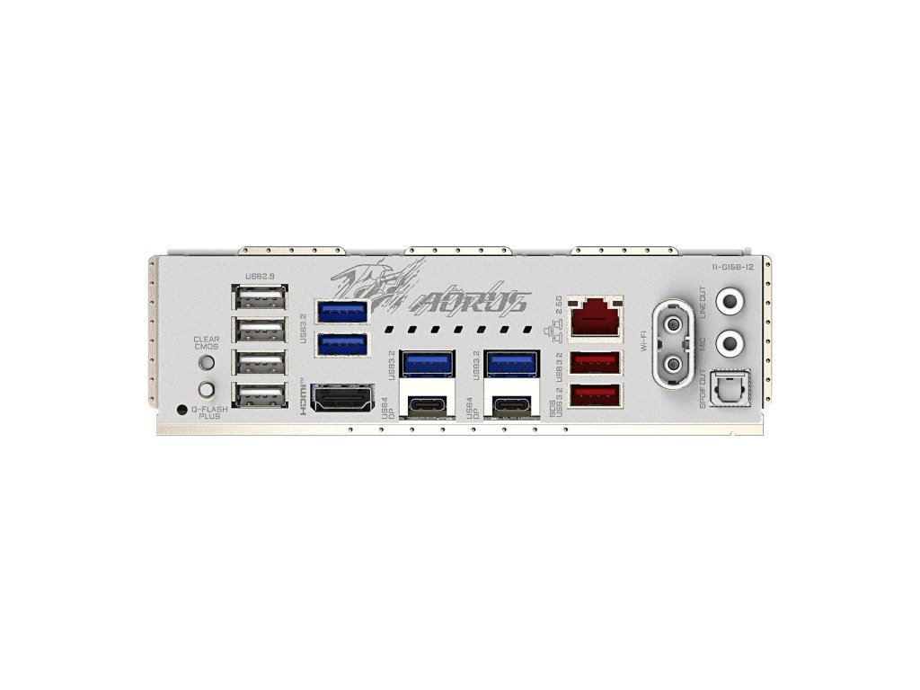 Porty na zadním panelu: , *1x tlačítko Clear CMOS *1x tlačítko Q-Flash Plus *1x ,HDMI *2x ,USB4® Type-C® ,(DisplayPort) *2x USB 3.2 Gen 2 Type-A (červený) *4x ,USB 3.2 Gen 1 *4x USB 2.0/1.1 *1x ,RJ-45 *2x ,anténní konektor (2T2R) *2x audio jack *1x optický konektor S/PDIF out