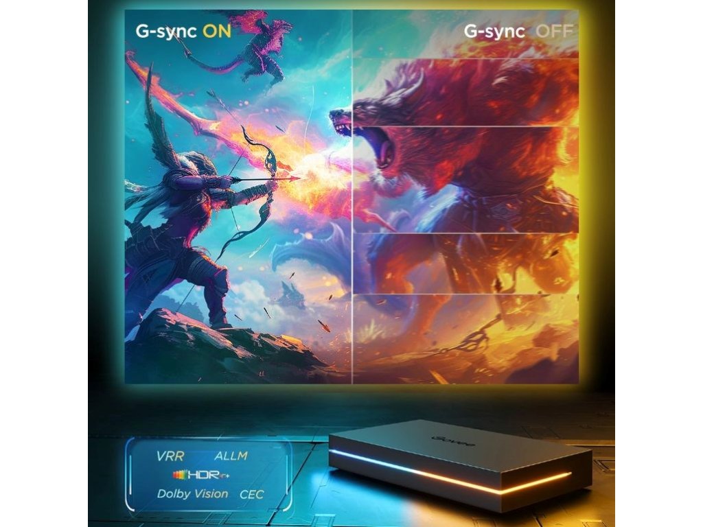 Govee AI Sync Box Kit 2 je vybavený HDMI 2.1, čo umožňuje podporu pokročilých funkcií, ako sú Dolby Vision, ARR a ALLM. Vďaka tejto technológii môžete očakávať špičkovú kvalitu obrazu s bohatými farbami a vyššiu dynamiku, ideálne pre moderné domáce kino a herné zostavy. HDMI 2.1 zabezpečuje optimálnu kompatibilitu s najnovšími štandardmi, čo znamená plynulé prepínanie režimov a minimálne oneskorenie pre dokonale synchronizovaný vizuálny zážitok.