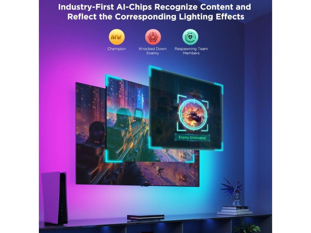 Govee AI Sync Box Kit 2 je prvým zariadením vo svojej kategórii, ktoré je vybavené čipom NPU. Tento výkonný procesor umožňuje ultra-rychle spracovanie obrazu v reálnom čase, čo zabezpečuje plynulé a presné premietanie farieb pri každom hernom momente. Vďaka NPU čipu sa herné prostredie stáva pohlcujúce a dynamické, pričom farby reagujú okamžite na všetky akčné scény, čo vás vtiahne hlbšie do deja.