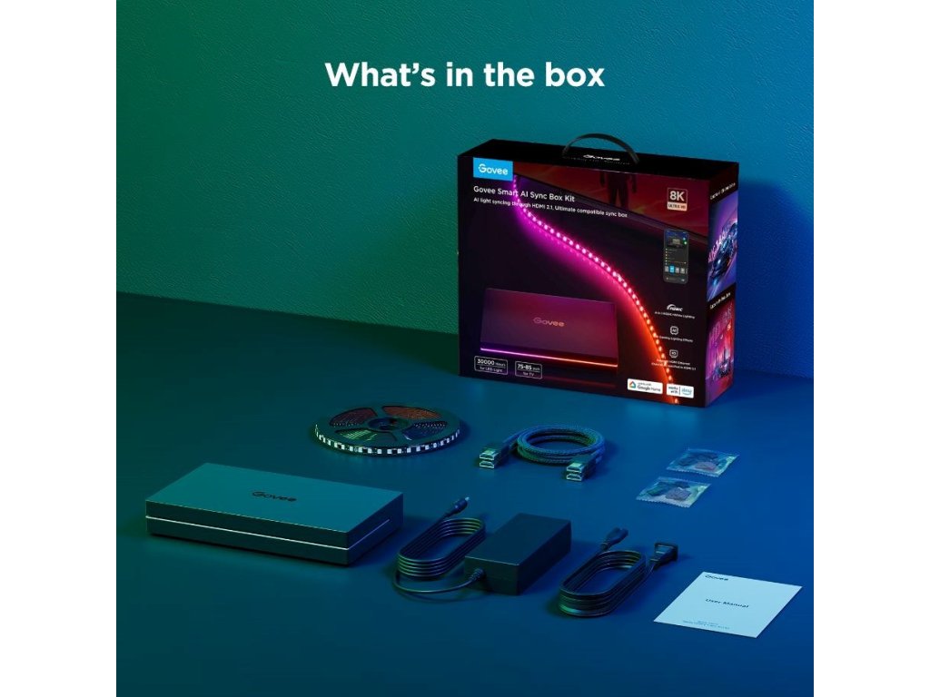 Govee AI Sync Box Kit 2 premení váš domov na centrum dokonalého audiovizuálneho zážitku vďaka pokročilej technológii poháňanej umelou inteligenciou. Navrhnutý tak, aby sa k nemu mohli pripojiť až 4 zariadenia ako PC konzoly a iné zdroje HDMI signálu a kompatibilný s uhlopriečkami 55-65 palcov, tento kit analyzuje HDMI signál a v reálnom čase premieta farby presne odpovedajúce dianiu na obrazovke. Vďaka svetelným pásom RGBWIC si užijete precíznu reprodukciu farieb a dynamickú odozvu, ktoré vytvoria okolité prostredie, čo oživí každý moment.