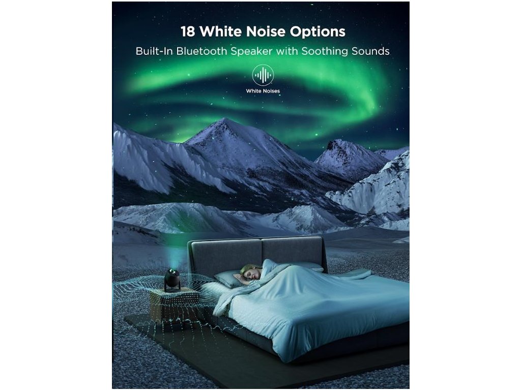 Govee Star Light Projector ponúka 18 prednastavených vzorov bieleho šumu, ktoré vám pomôžu navodiť pokojný pocit a podporiť relaxáciu alebo lepší spánok. Okrem toho môže projektor fungovať aj ako Bluetooth reproduktor, čo vám umožní prehrávať vlastnú hudbu alebo audioknihy priamo zo zariadenia. Či už preferujete relaxáciu pri bielom šume alebo chcete, tento projektor vám poskytne všestranné zvukové možnosti pre každú situáciu.