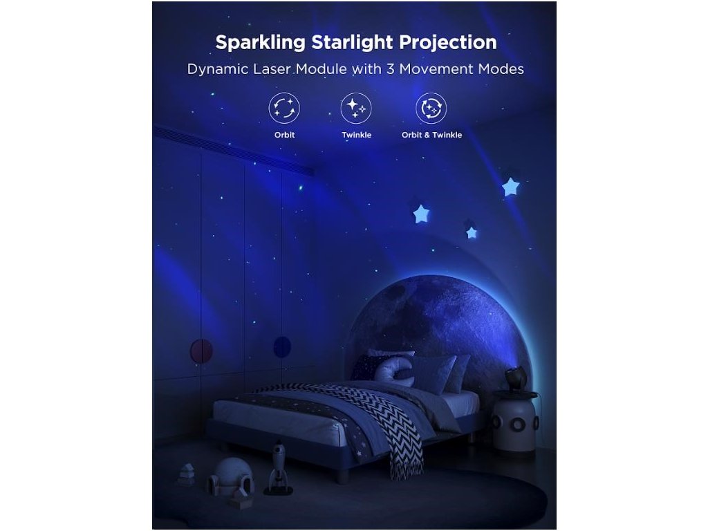 Govee Galaxy Light Projector Pro prináša čarovnú atmosféru nočnej oblohy priamo do vášho domova. Tento projektor premieta realistické hviezdne nebo a farebné mlhoviny, ktoré vytvárajú upokojujúcu a fascinujúcu svetelnú šou ideálnu na relaxáciu, meditáciu alebo spríjemnenie večerného oddychu. S viacfarebnými projekčnými efektmi a možnosťou nastavenia rôznych scén môžete prispôsobiť atmosféru presne podľa vašej nálady, či už si želáte pokojný spánok alebo pôsobivú vizuálnu podívanú.