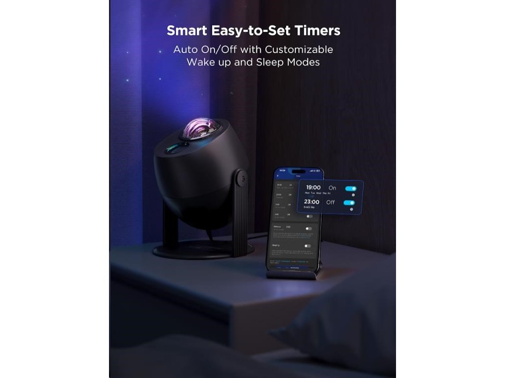 Govee Star Light Projector je tiež vybavený časovačom, ktorý umožňuje nastaviť automatické vypnutie, takže môžete ľahko zaspávať pod hviezdnou oblohou, bez obáv, že projektor zostane zapnutý počas noci. Tento projektor je skvelým doplnkom nielen do spálne, ale aj do obývačky, domácej kancelárie alebo pre akúkoľvek špeciálnu príležitosť, kde chcete vytvoriť unikátnu atmosféru.