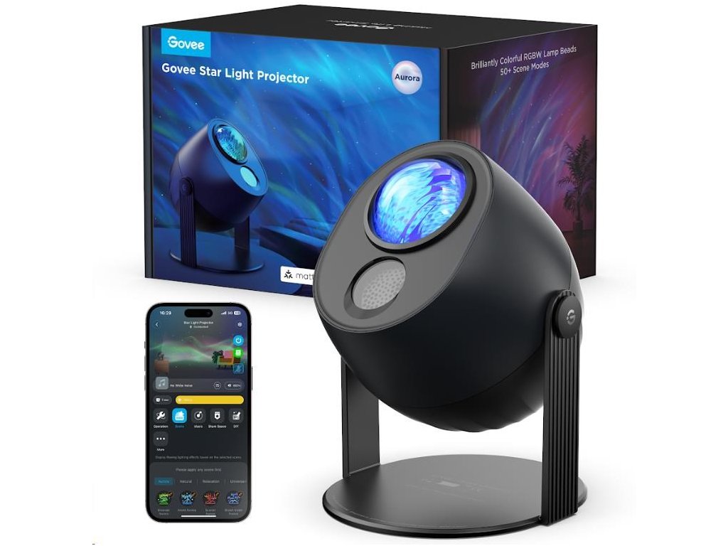 Projektor ponúka jednoduché ovládanie prostredníctvom aplikácie Govee Home, kde si môžete vyberať z niekoľkých prednastavených režimov alebo vytvárať vlastné svetelné kombinácie. Navyše je kompatibilný s hlasovými asistentmi, ako je Amazon Alexa a Google Assistant, čo vám umožňuje ovládať projekciu aj pomocou hlasových príkazov. Vďaka tejto chytrej technológii môžete pohodlne prepínať medzi rôznymi svetelnými scénami alebo meniť farby, aniž by ste museli vstávať z pohovky. Vďaka protokolu Matter sa môže integrovať aj do HomeKitu.