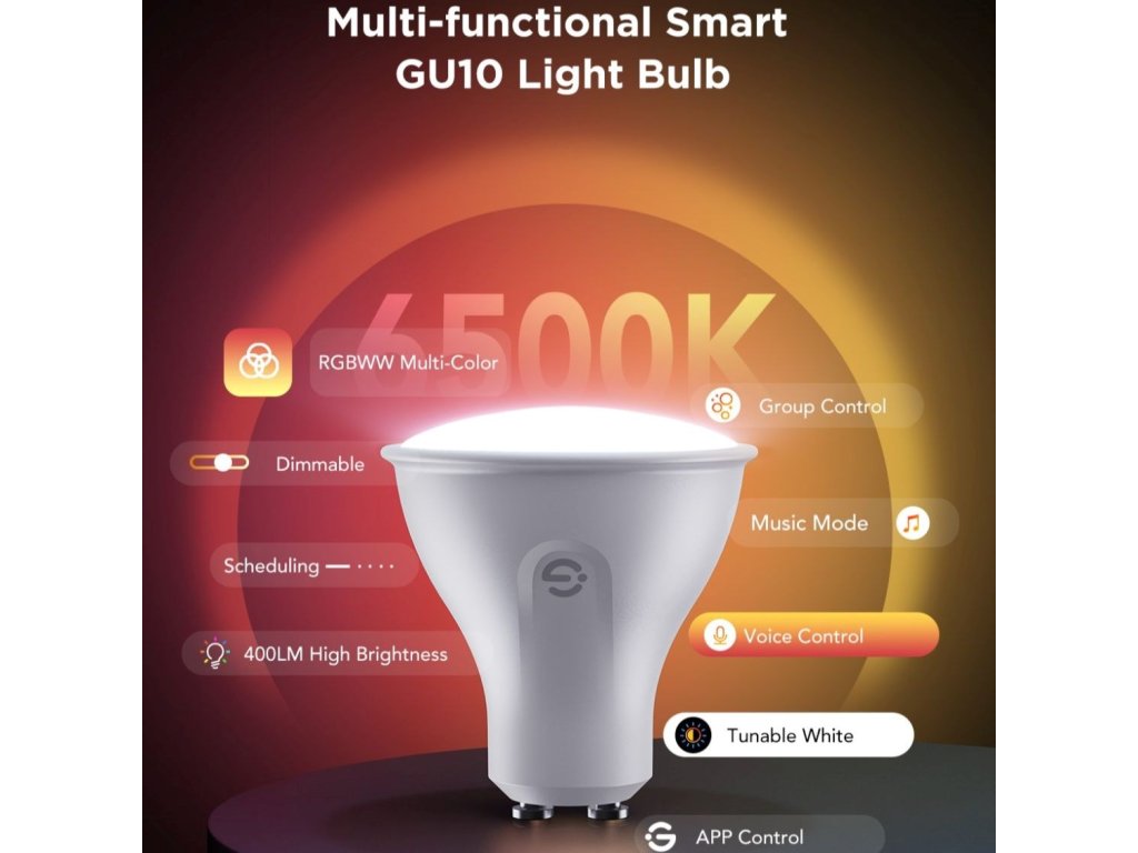 Inteligentné žiarovky Govee B600D GU10 sú tu pre dokonalé moderné osvetlenie vášho domova. Majú svietivosť 400 lúmenov pri príkone 4,8 W. Žiarovky využívajú technológiu RGBWW, čo znamená 16 miliónov farieb a rôzne teploty bielej. Žiarovku preto môžete použiť ako dekoratívne osvetlenie, ale aj ako hlavný zdroj bieleho svetla s teplotným rozsahom 2700-6500 K s indexom podania farieb 80 Ra a možnosťou stmievania od 1 do 100 %. To stačí na pokrytie celého dňa a všetkých druhov činností, ako je práca, relaxácia alebo zaspávanie a prebúdzanie. Žiarovky sa vďaka úsporným vlastnostiam neprehrievajú, a tak vydržia svietiť dlhé roky. Možno ich ovládať pomocou aplikácie Govee Home, Google Home a hlasom pomocou aplikácií Google Assistant, Alexa a Siri. Viacero žiaroviek je možné zoskupiť do skupín pre pohodlnejšie ovládanie. Aplikácia ponúkne množstvo prednastavených scén, ktoré sa hodia na každú príležitosť, a vďaka mikrofónu dokážu žiarovky dokonca vizualizovať hudbu. Žiarovky sa pripájajú cez Bluetooth na rýchle miestne ovládanie alebo cez Wi-Fi na diaľkové ovládanie. Vďaka tomu môžete žiarovky ľubovoľne ovládať a časovať, keď nie ste doma, a zabrániť tak tomu, aby sa váš domov stal terčom zlodejov.