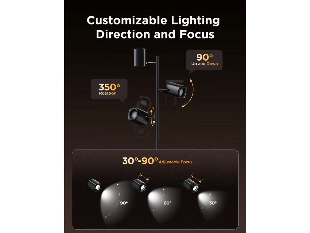 Každé rameno lampy je plne nastaviteľné, čo vám umožní nájsť dokonalý uhol a smer svetla. Ramena sa otáčajú o 350° horizontálne a 90° vertikálne, zatiaľ čo hlavica ponúka jemnú rotáciu 30°–90°. Tým dosiahnete presné nasvietenie priestoru podľa vašich potrieb. Flexibilné ovládanie každého zdroja samostatne vám dáva kontrolu nad jasom, farbou aj zapnutím. Vďaka tejto variabilite je lampa skvelá na čítanie, ako aj na zvýraznenie dizajnových prvkov v interiéri.