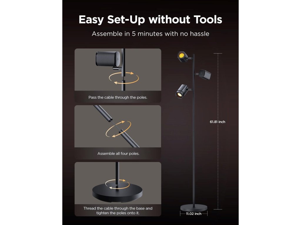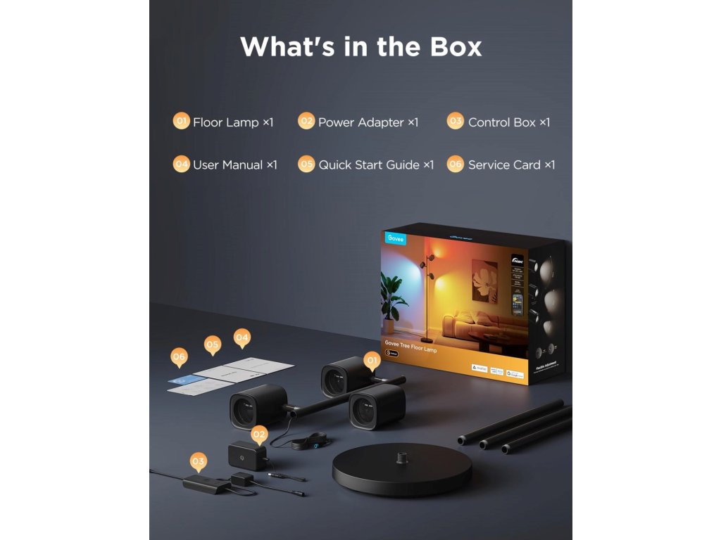Govee Tree Floor Lamp je pripravená na okamžité použitie bez zložitej montáže. Stačí lampu rozbaliť, zapojiť a spustiť aplikáciu – všetko je rýchle a intuitívne. Vďaka tomu si môžete vychutnávať chytré osvetlenie okamžite, bez zbytočných starostí alebo nástrojov.