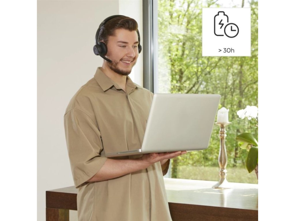 Univerzálny bezdrôtový headset pre všetkých, ktorí vyžadujú flexibilitu, pohodlie a špičkovú výdrž. Ideálny pre dlhé konferenčné hovory, online schôdzky aj počúvanie obľúbenej hudby.