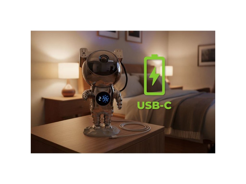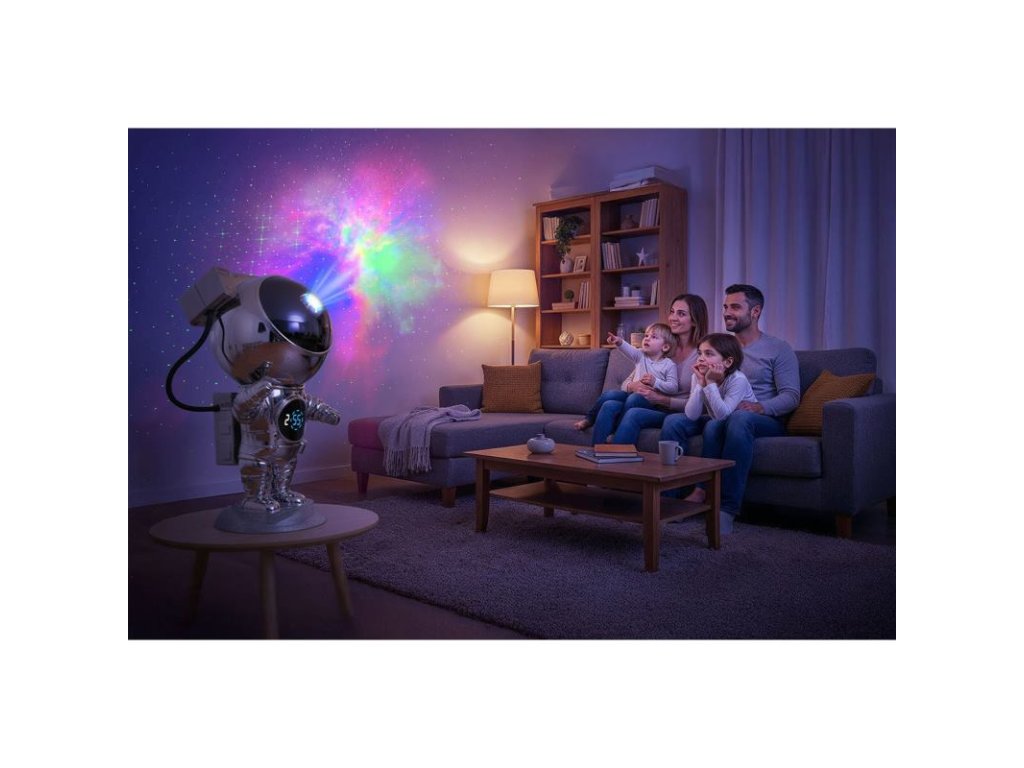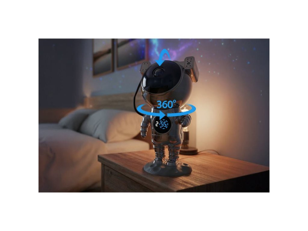 Maximálna flexibilita: Vďaka magnetickej základni môžete hlavu astronauta otáčať o 360° a nasmerovať projekciu presne tam, kam chcete - na strop, stenu alebo akúkoľvek inú časť miestnosti.