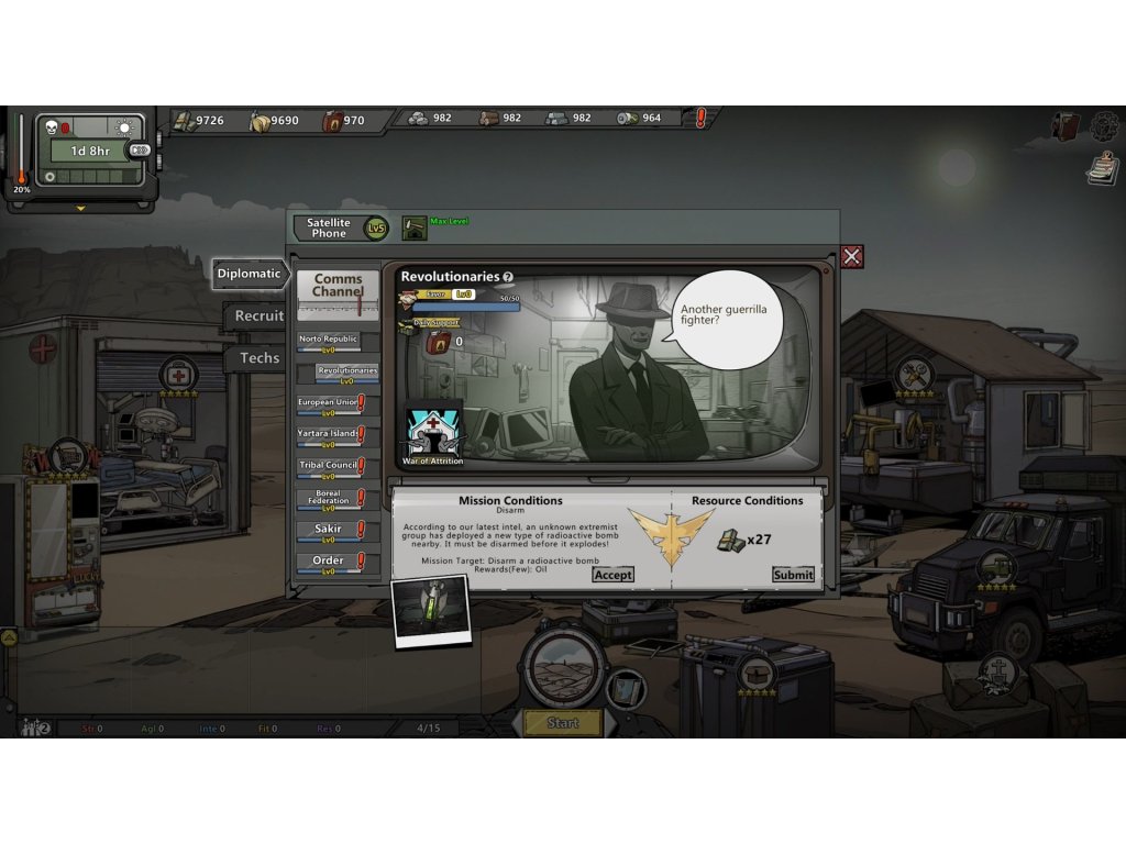 You can recruit and train new fighters to help your case. There are numerous characters with different jobs, their own talents and battle skills. Make the best of their stats and assign them to your group as you wish. Build and upgrade your camp that will let you work on new technologies and craft new armour for your revolutionary fighters.