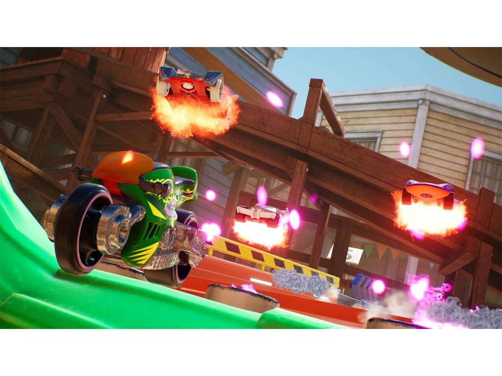 Whether it's the backyard of a house in the suburbs or a mini-golf course in a village in the Wild West, your tracks will be surrounded by the most stunning environments! Discover 5 brand new locations, master their secrets, and you'll feel right at home both there and on the podium.
