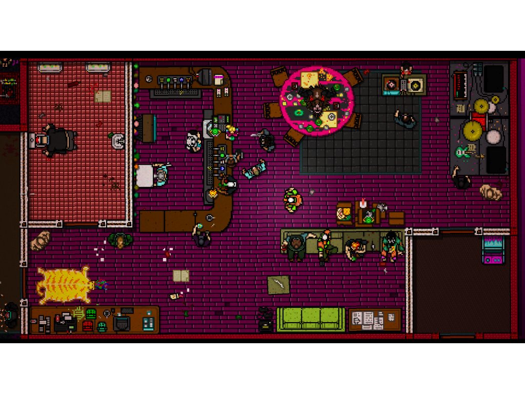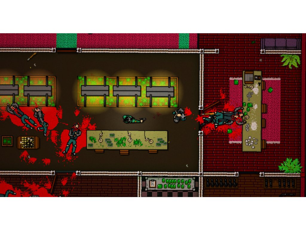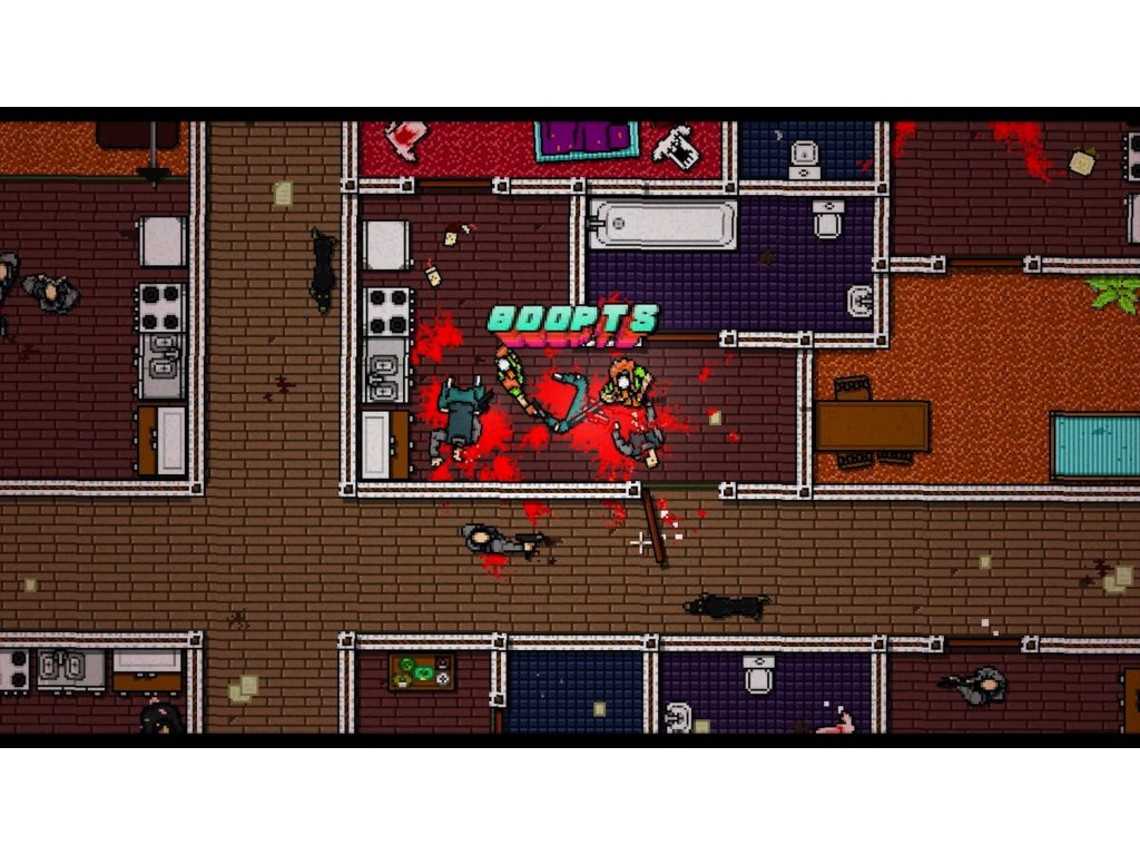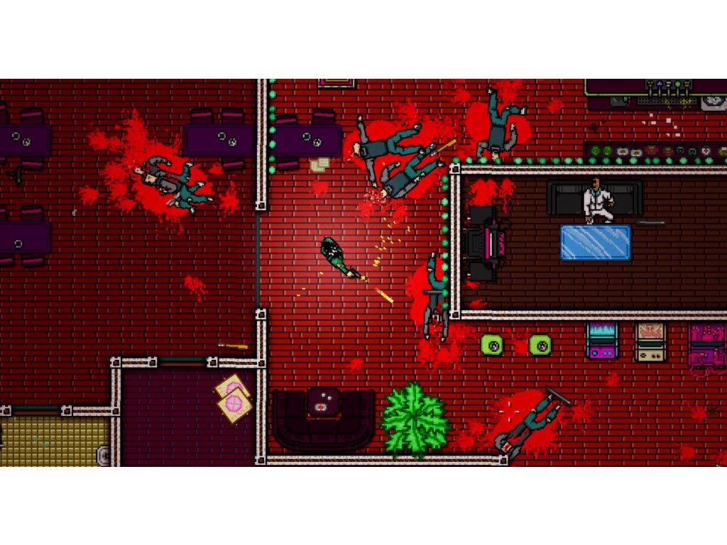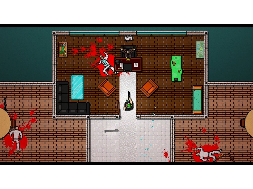 Hotline Miami 2: Wrong Number is separated into chapters, each of which is further broken into stages, and plays identically to its predecessor, Hotline Miami. Each chapter is played from a top-down perspective, and the purpose of the majority of them is to beat each adversary within. Each stage has a unique design and often includes wide open areas where attackers can approach you in a variety of ways.