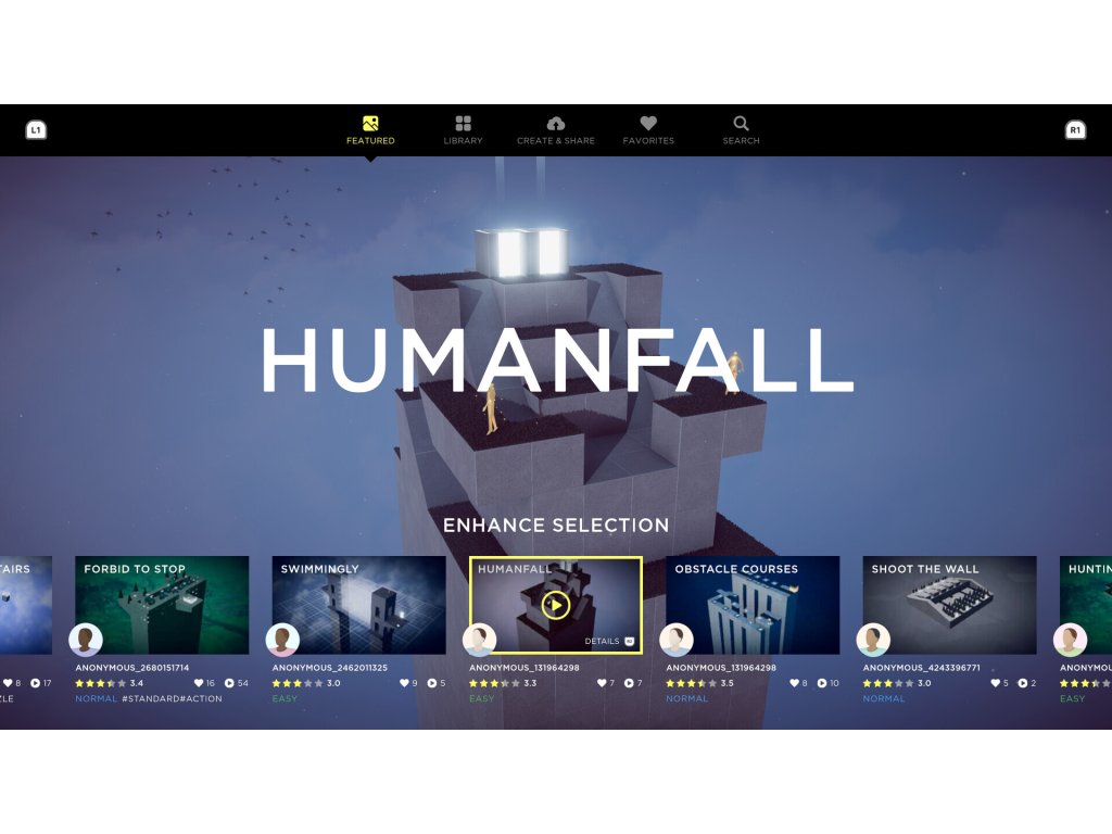 Browse an ever-growing library of stages created by other players. Play, rate, and discover new types of puzzles in this limitless vault. Bring your ideas to life using the intuitive Stage Creator, be it a straightforward puzzle, action stage, or heck, even an artful sculpture! Immerse yourself like never before as you tower over the teeming, ant-like people! Mu ha ha ha ha!