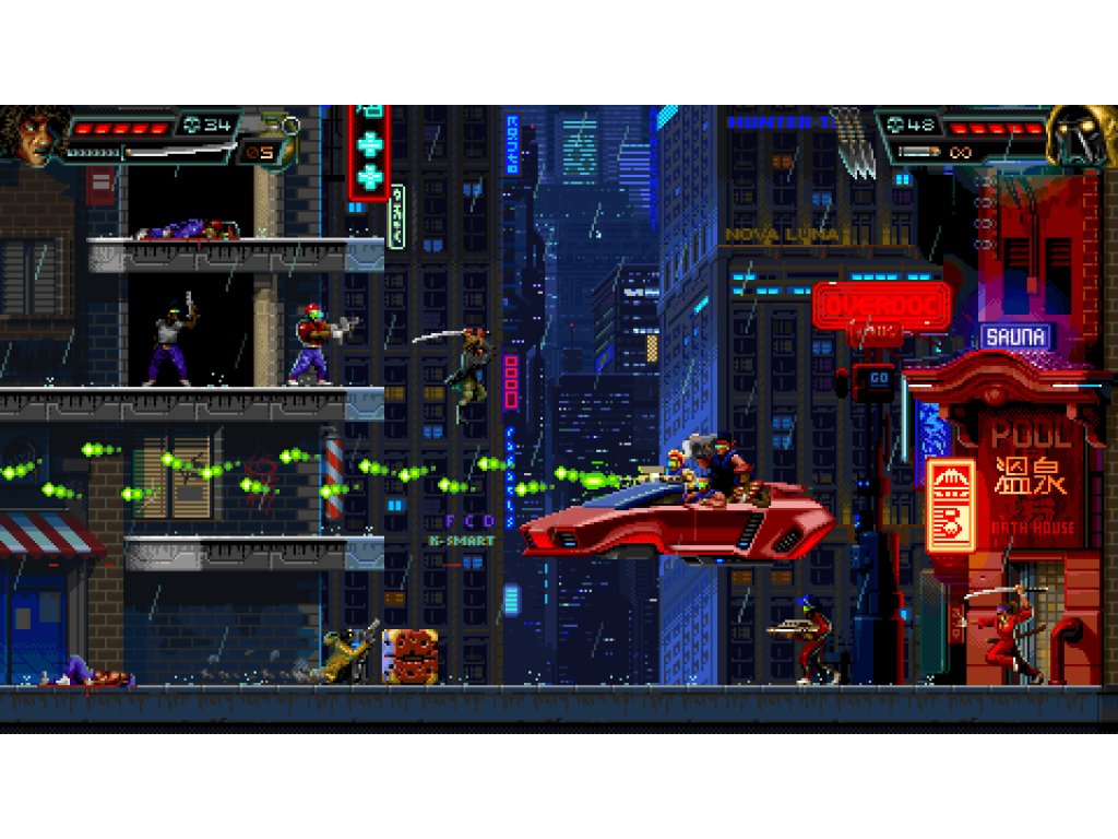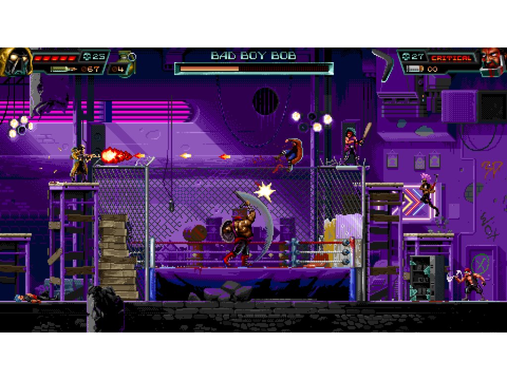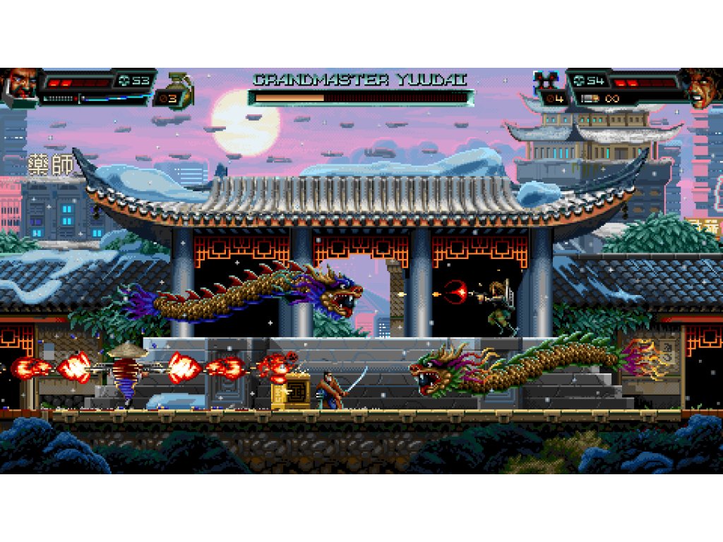 Hand painted 16-bit pixel art graphics and hand-drawn animations combined with fluid action-packed 60-FPS gameplay and an epic synthesized soundtrack