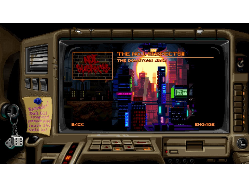 Gritty, neon soaked, graffiti strewn 80s cityscapes to cleanse, each with their own infamous gang boss to terminate and bounty to collect.