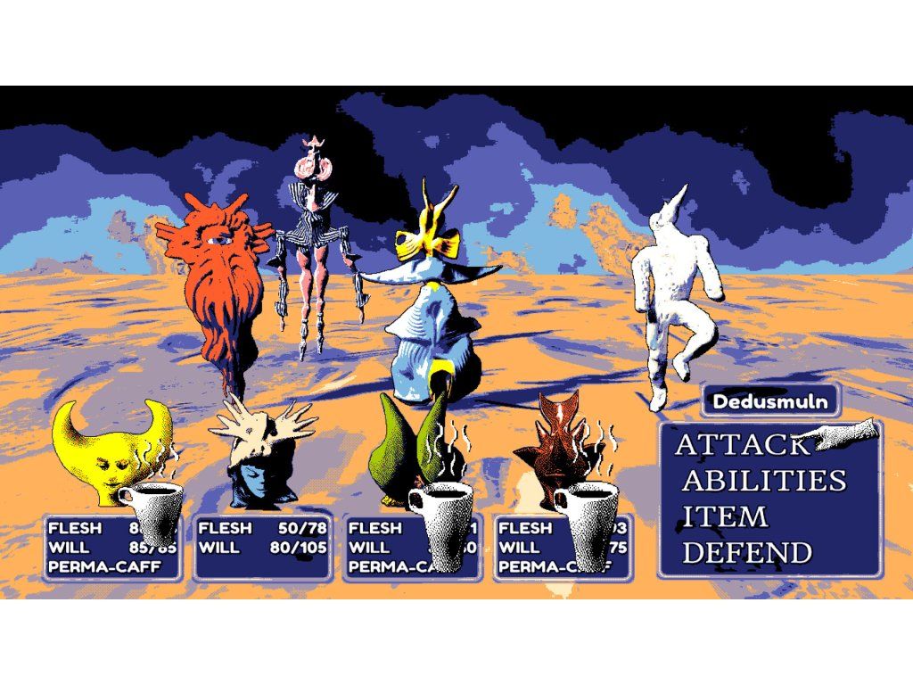 - Engage in turn-based RPG combat against over 25 adversaries, each with unique capabilities and behaviors.