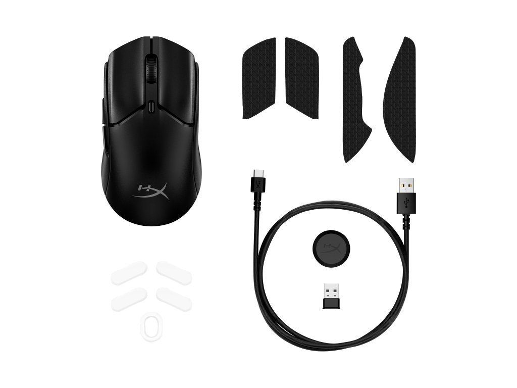| Obsah balenia | Myš HyperX Pulsefire Haste 2 Mini Wireless, uchopenia HyperX, spodné plôšky s nízkym trením, kábel USB-C na USB-A, bezdrôtový hardvérový kľúč USB, predlžovací adaptér USB, stručná úvodná príručka. |