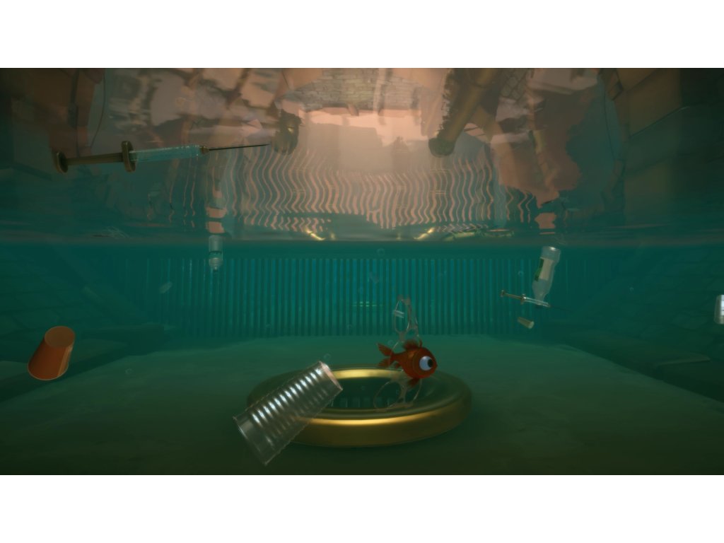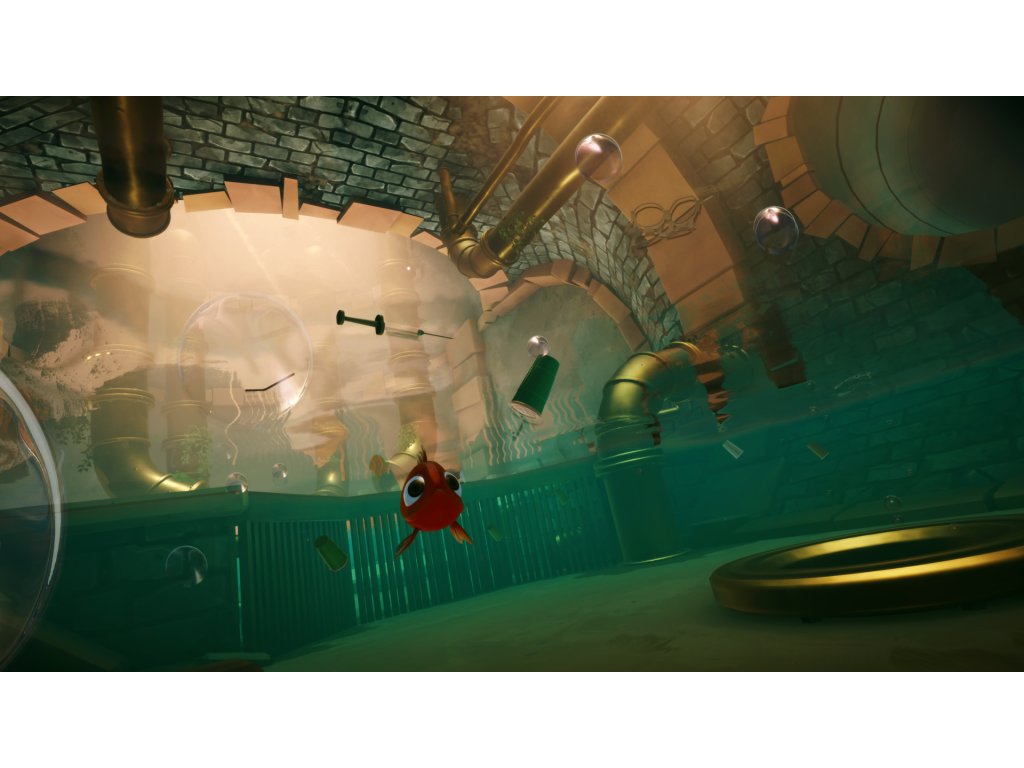 Our four fin-tastic friends will be hitching rides in all manner of ad hoc water carriers including jars, mop buckets on wheels and the occasional pint glass. Cheers! Navigating in each make-shift aquatic vehicle poses its own unique challenge, but don’t worry, the relative freedom of open water is never too far away with inviting fountains, swimming pools and err, sewers full of hazardous materials to splash around in, before reaching the final goal – the shimmering, open ocean.