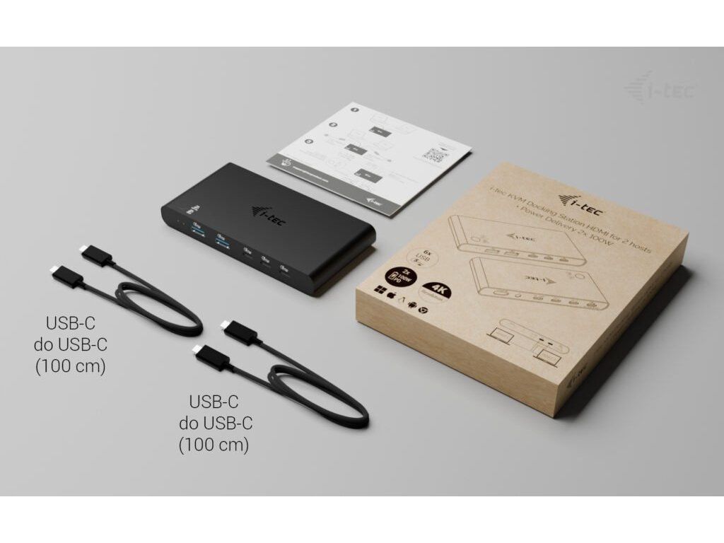 i-tec KVM Docking Station HDMI for 2 hosts, Power Delivery 2x 100W