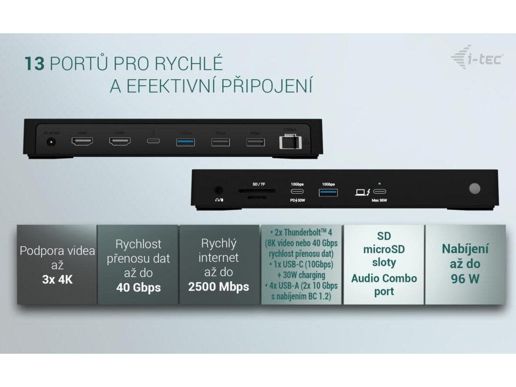 Ultra vysoký výkon, ultrarýchly prenos dát a podpora rozlíšenia až 8K/60 Hz. Jedna z najvýkonnejších dokovacích staníc i-tec na trhu!