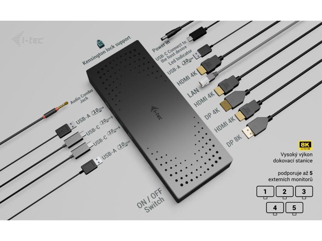 i-tec Univerzálna 5x 4K/60Hz Display Docking Station + Power Delivery 100W