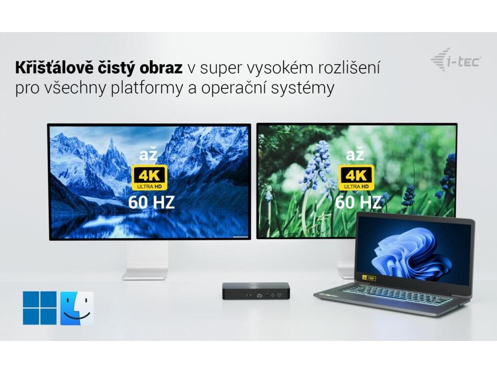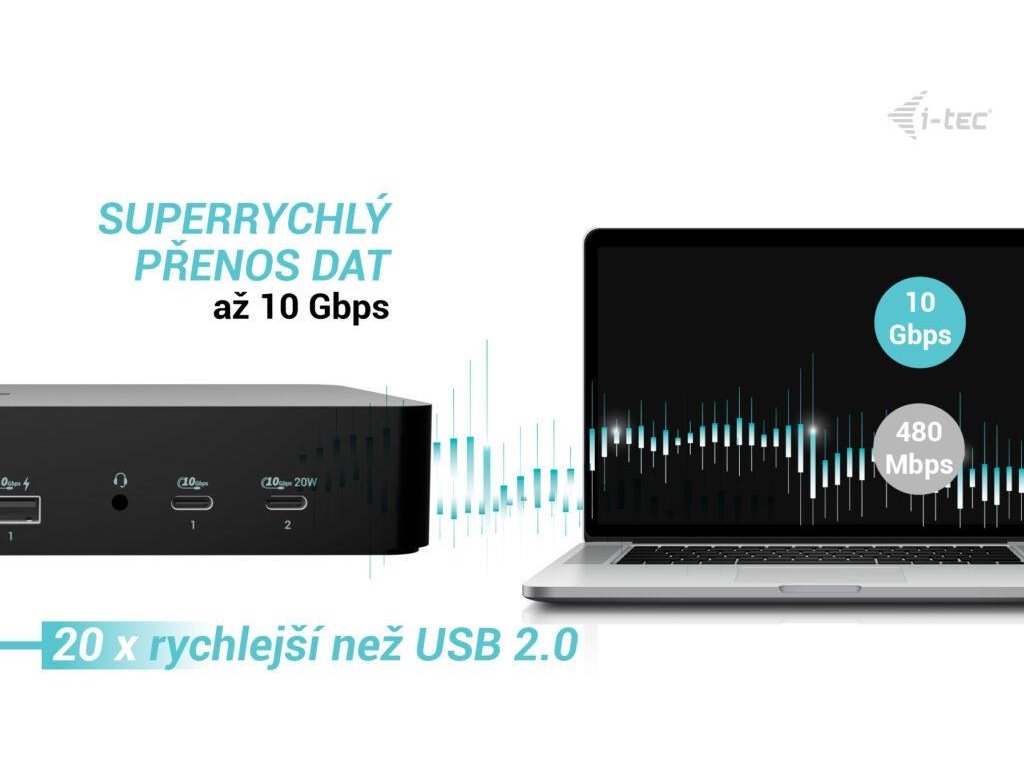 - Dokovacia stanica s veľmi vysokým výkonom a podporou pripojenia až dvoch externých monitorov v rozlíšení 4K/60 Hz (ľubovoľné zariadenie, ľubovoľný operačný systém)