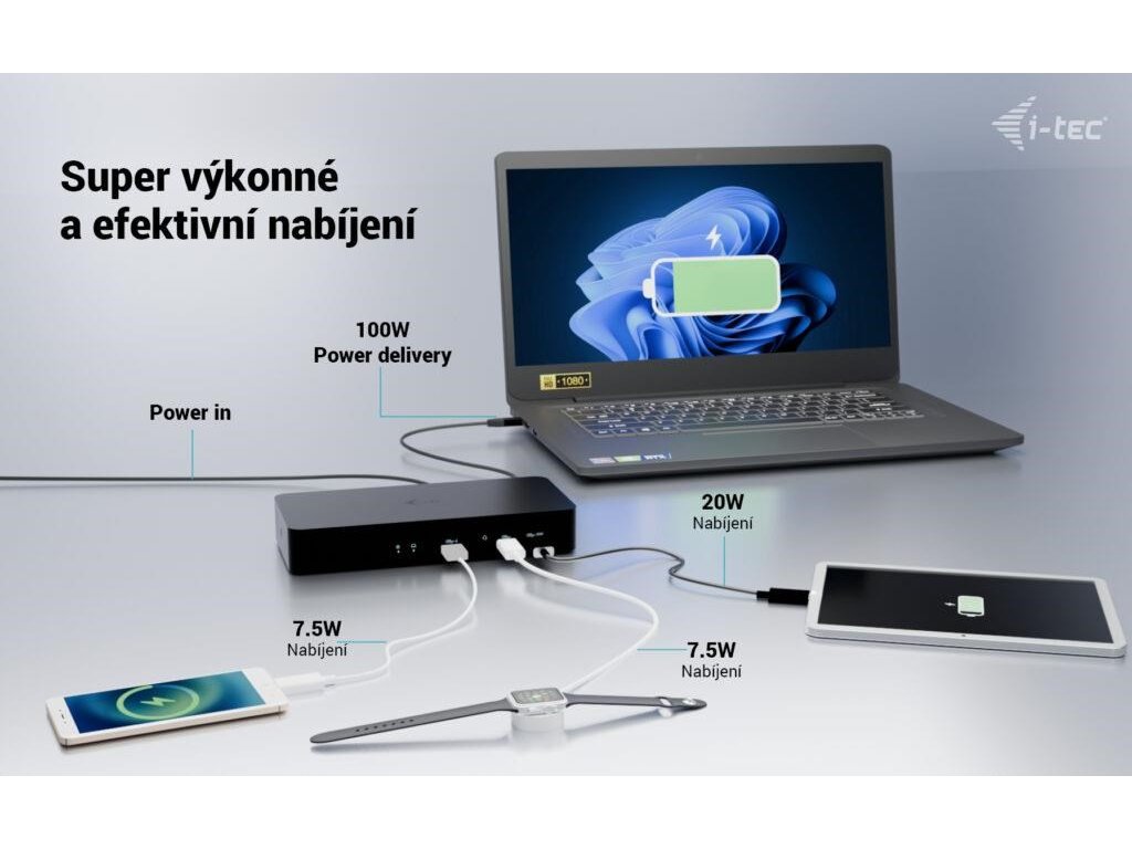 i-tec Universal Intelligent Dual Display Docking Station, Power Delivery 100W