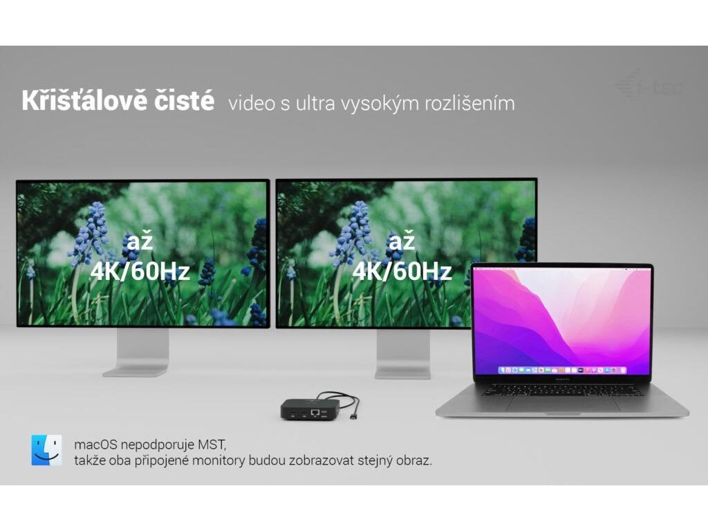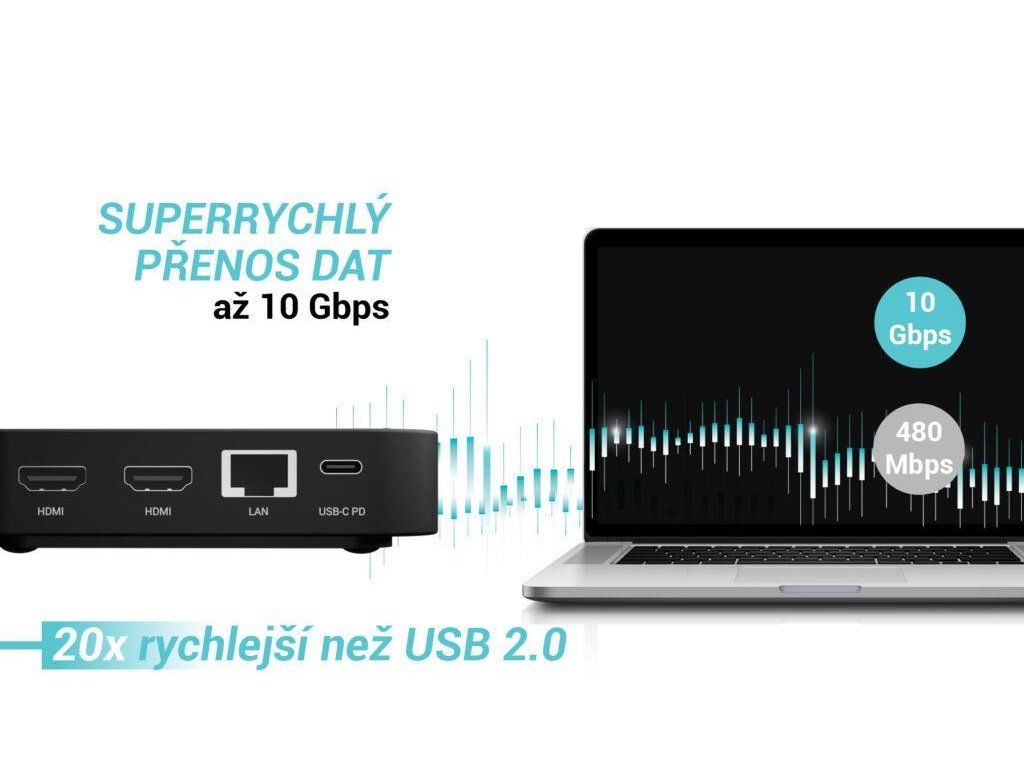Moderná USB-C dokovacia stanica pre kancelárske použitie s podporou až dvoch externých monitorov v rozlíšení 4K. Stanica je kompatibilná s akýmkoľvek notebookom vybaveným portom USB-C, USB4 alebo Thunderbolt 3/4/5. Ponúka 6 USB portov, spoľahlivé a rýchle pripojenie k firemnej sieti vďaka integrovanému LAN portu a možnosťinštalácie za monitor, čo z nej robí ideálneho partnera pre profesionálne použitie. Samozrejmosťou je aj schopnosť nabíjania notebooku alebo tabletu výkonom až 100 W.