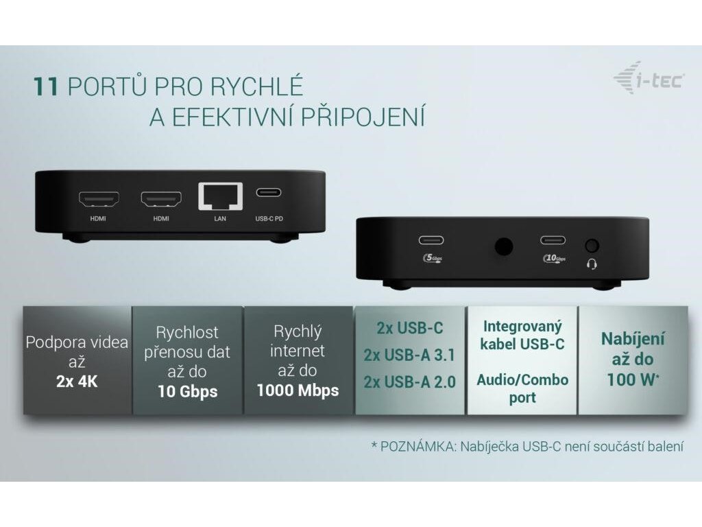 i-tec USB-C Dual HDMI Docking Station s Power Delivery 100 W