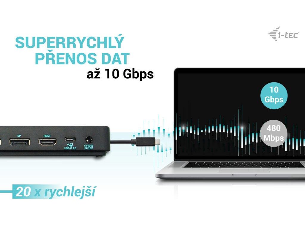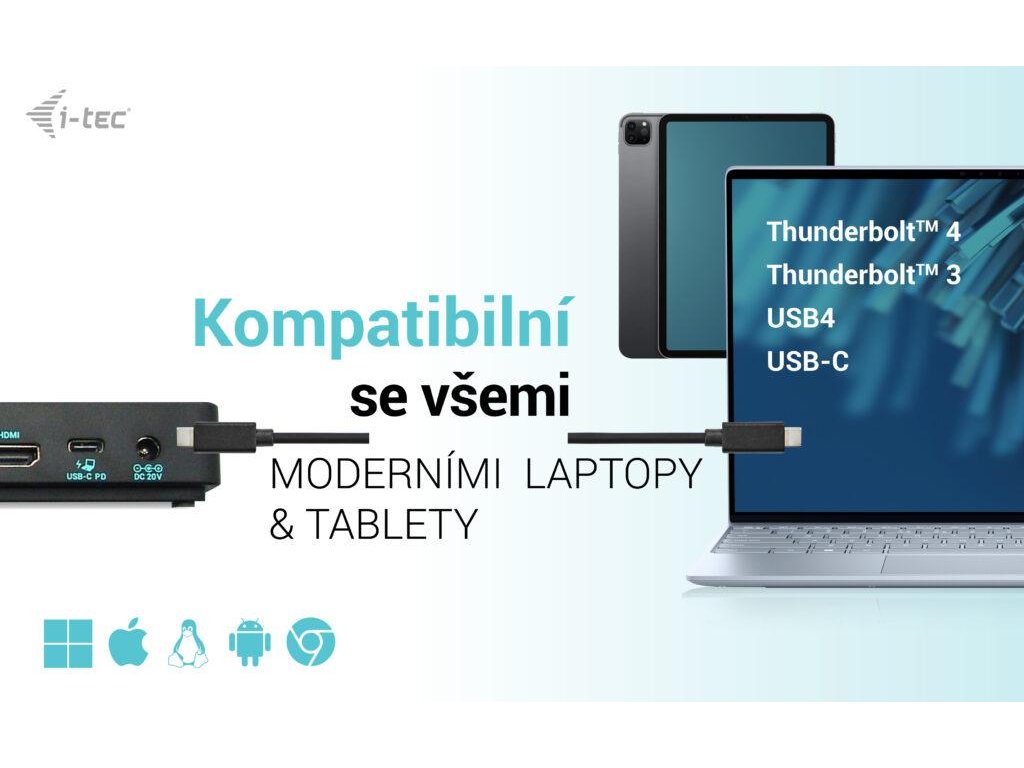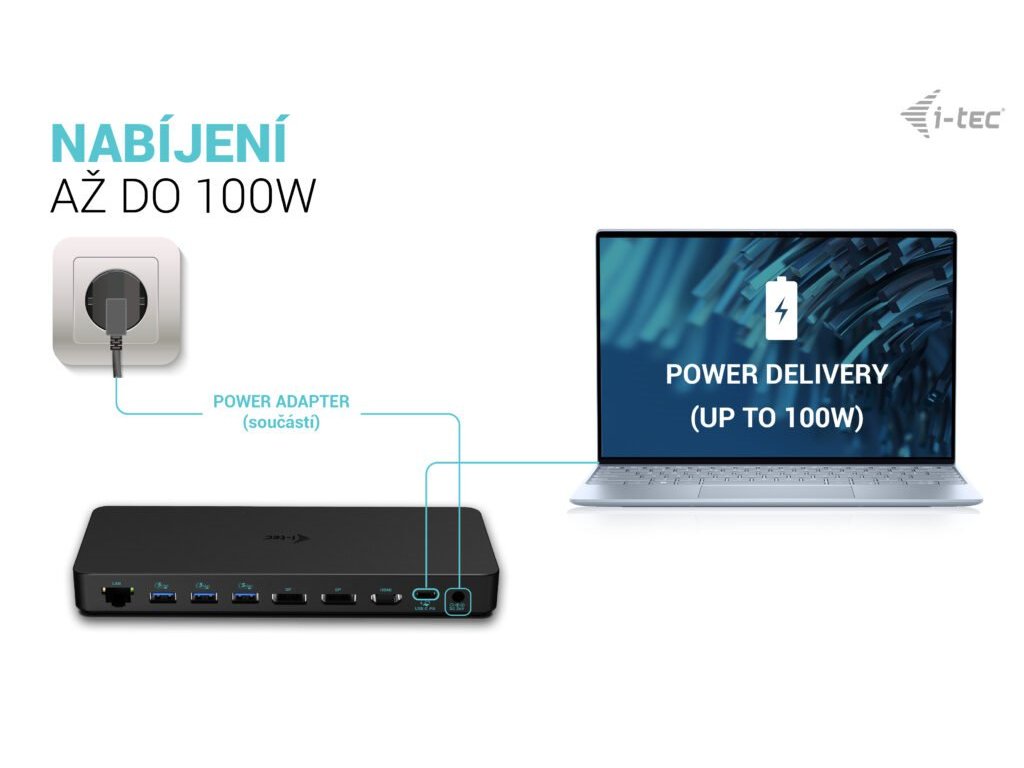 I-tec USB-C Triple 4K Display Docking Station Gen2 Pro, PD 100W POPIS: Vysoce výkonná dokovací stanice USB-C nové generace, která podporuje výstup až na tři externí monitory ve vysokém rozlišení až 4K. Dokovací stanici lze používat prakticky se všemi notebooky vybavenými porty USB-C, USB4 a Thunderbolt“ 3/4 a zároveň podporuje všechny běžné současné operační systémy. Dostatek portů USB (včetně těch podporujících rychlost Gen 2 až 10 Gb/s), spolehlivé a rychlé připojení k firemní síti díky integrovanému portu LAN a podpora instalace za monitor, to vše dělá z této dokovací stanice ideálního společníka pro opravdové profesionály. Samozřejmě podporuje nabíjení notebooku nebo tabletu, a to až do výkonu 100 W. Připojení 3 externích monitorů s rozlišením až 4K*. Napájení: až 100 W K dispozici 2 porty DisplayPort a 1 port HDMI 6 portů USB: 2x USB-C (10 Gb/s a 4x USB-A (1x Gen 2 (10 Gb/s) podporující rychlé nabíjení BC 1.2 a 3x Gen 1 (5 Gb/s). Gigabitový Ethernet RJ-45 poskytuje spolehlivé, robustní a vysokorychlostní připojení k internetu s podporou rychlostí 10/100/1000 Mb/s Kombinovaný konektor pro zvuk a mikrofon Zámek Kensington poskytuje ochranu proti krádeži, zejména ve sdíleném kancelářském prostředí nebo na veřejných místech Vypínač napájení dokovací stanice umožňuje maximální úsporu energie Dokovací stanice podporuje držák VESA pro inteligentní vertikální instalaci za monitor s podporou VESA Podporuje systémy Windows 10/11, macOS, iPadOS, Android, Chrome OS a Linux (s nejnovějšími aktualizacemi) * Systém macOS nepodporuje technologii Multi Stream Transport (MST). Připojení dvou nebo více monitorů ke stanici macOS způsobí, že všechny monitory budou zobrazovat stejný obraz. SPECIFIKACE: 1x USB-C port pro připojení k notebooku s USB-C nebo ThunderboltTM 3/4 (100 cm propojovací kabel USB-C je součástí balení) Technologie dokovací stanice: USB-C (MST) Power Delivery: 100 W Video Porty: 2x DisplayPort, 1x HDMI Rozlišení: Hostitelské zařízení s podporou DisplayPort 1.2: 1 monitor – 1x DP nebo HDMI › až 4K/30Hz 1 monitor – 1x DP nebo HDMI › až 1080p/120Hz 2 monitory – 1x DP + 1x HDMI › až 2x 1080p/60Hz*. 2 monitory – 2x DP › až 2x 1080p/60Hz* 3 monitory – 1x DP + 1x DP + 1x HDMI › až 1x 1080p/60Hz + až 2x 720p/60Hz* Hostitelské zařízení s podporou DisplayPort 1.4: 1 monitor – 1x DP nebo HDMI › až 4K/60Hz 2 monitory – 1x DP + 1x HDMI › až 2x 1440p/60Hz* 2 monitory – 1x DP + 1x HDMI › až 2x 4K/30Hz* 2 monitory – 2x DP › až 2x 4K/30Hz* 3 monitory – 1x DP + 1x DP + 1x HDMI › až 3x 1080p/60Hz* Hostitelské zařízení s DisplayPortem 1.4 s podporou DSC: 1 monitor – 1x DP nebo HDMI › až 4K/60Hz 1 monitor – 1x DP › až 4K/144Hz nebo 1440p/240Hz nebo 1080p/360Hz 1 monitor – 1x HDMI › až 1440p/144Hz nebo 1080p/240Hz 2 monitory – 1x DP + 1x HDMI › až 2x 4K/60Hz* 2 monitory – 1x DP + 1x HDMI › až 2x 1440p/144Hz* 3 monitory – 1x DP + 1x DP + 1x HDMI › až 3x 4K/30Hz* 2x USB-C 3.2 Gen2 (pouze data) 3x USB 3.2 Gen1 (5Gbps) 1x USB 3.2 Gen2 (10Gbps) s podporou rychlého nabíjení (BC 1.2) 1x Ethernet GLAN RJ-45 port (Realtek RTL8153) 1x 3,5mm Audio kombo konektor 1x vstup pro napájení (20V/6.5A) Klonování MAC adresy: ano (za použití software i-tec Docker Pro) WOL: S1, S2, S3 Přepínač ON/OFF pro zapnutí a vypnutí dokovací stanice LED indikace Podpora pro Kensington lock Podpora pro VESA uchycení Kabel USB-C 3.2 Gen2 (100 cm) OS: Windows 10/11, macOS, Android, Chrome OS a Linux s nejnovějšími aktualizacemi Rozměry produktu: 212 x 82 x 23 mm Hmotnost produktu: 366 g SYSTÉMOVÉ POŽADAVKY Hardwarové požadavky: Zařízení s volným portem USB-C, USB4 nebo Thunderbolt™ 3/4 Požadavky pro funkci Power Delivery: Zařízení s volným portem USB-C, USB4 nebo Thunderbolt™ 3/4 s podporou Power Delivery Požadavky pro video výstup: Zařízení s volným portem USB-C nebo USB4 s podporou alternativního režimu DisplayPort nebo portem Thunderbolt™ 3/4 Operační systém: Windows 10 / 11, macOS*, iPadOS**, Android**, Chrome OS a Linux s nejnovějšími aktualizacemi * Systém macOS nepodporuje technologii Multi Stream Transport (MST). Připojení dvou monitorů ke stanici v systému macOS způsobí, že oba monitory budou zobrazovat stejný obraz. ** Systémy iPadOS, Android nepodporují technologii přenosu obrazu na více obrazovek ani možnost rozšířené obrazovky. To znamená, že při připojení k externímu monitoru se zobrazí pouze zrcadlená obrazovka. (Neplatí pro zařízení Android s rozšířením DEX a Easy Projection). Obsah balení Produkt Kabel USB z typu C na typ C (100 cm) Napájecí adaptér PříručkaDodatočné parametre