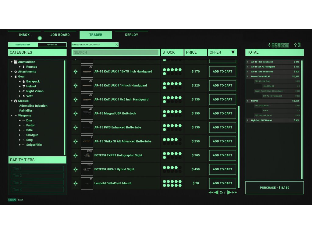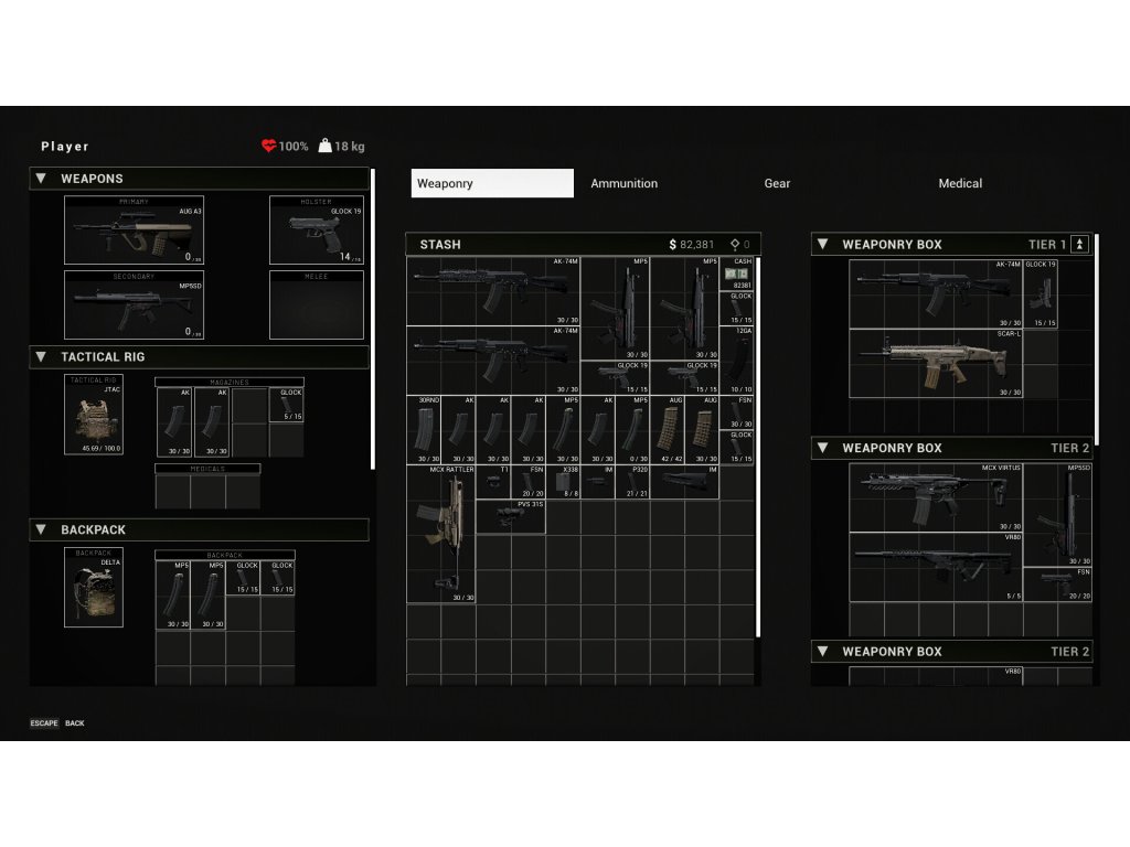 Your Hideout is where all preparations are made. Accept new Contracts, invite friends, or test your weapons at the firing range. This is also where you view your inventory, stash, and purchase or sell items. After each deployment, you will return here.