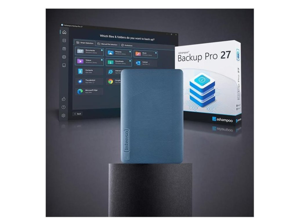 Robustné plastové puzdro v elegantnej čiernej alebo modrej farbe chráni vaše dáta pred vonkajšími vplyvmi a jeho textúrovaný povrch dodáva moderný vzhľad. S hmotnosťou iba 134 g (1 TB), respektíve 146 g (2 TB) je disk mimoriadne praktický a ideálny pre mobilné použitie. Súčasťou balenia je aj plná verzia softvéru Ashampoo Backup Pro pre jednoduché zálohovanie a obnovu dát, takže môžete byť pokojní, že vaše dáta sú v bezpečí.