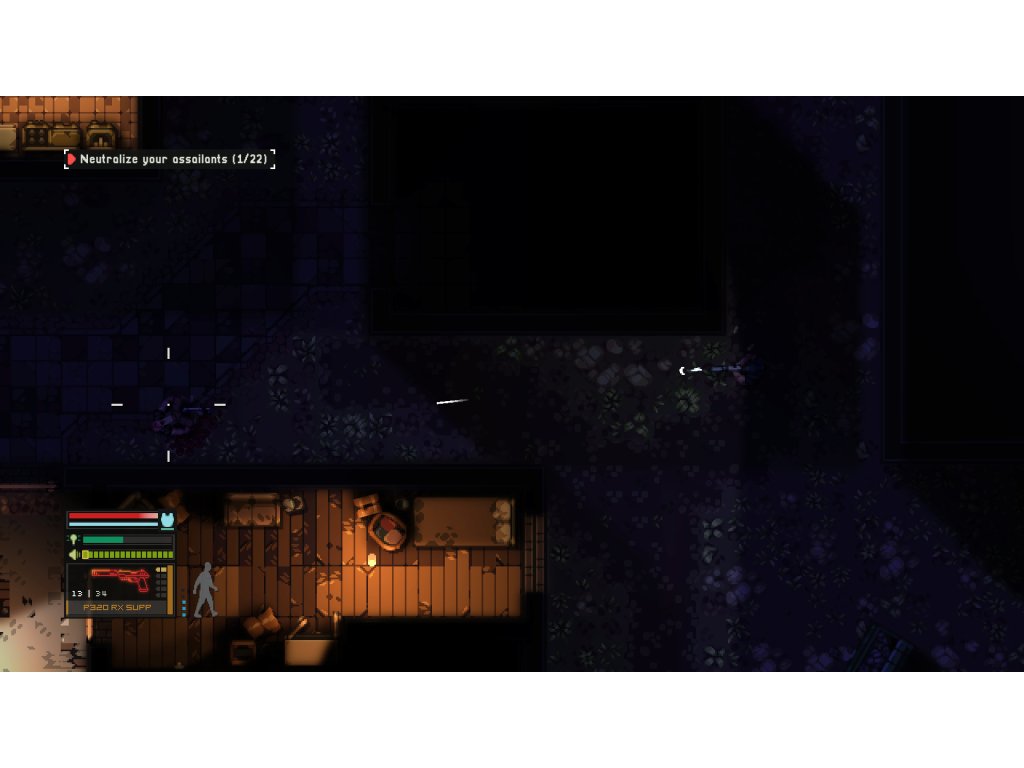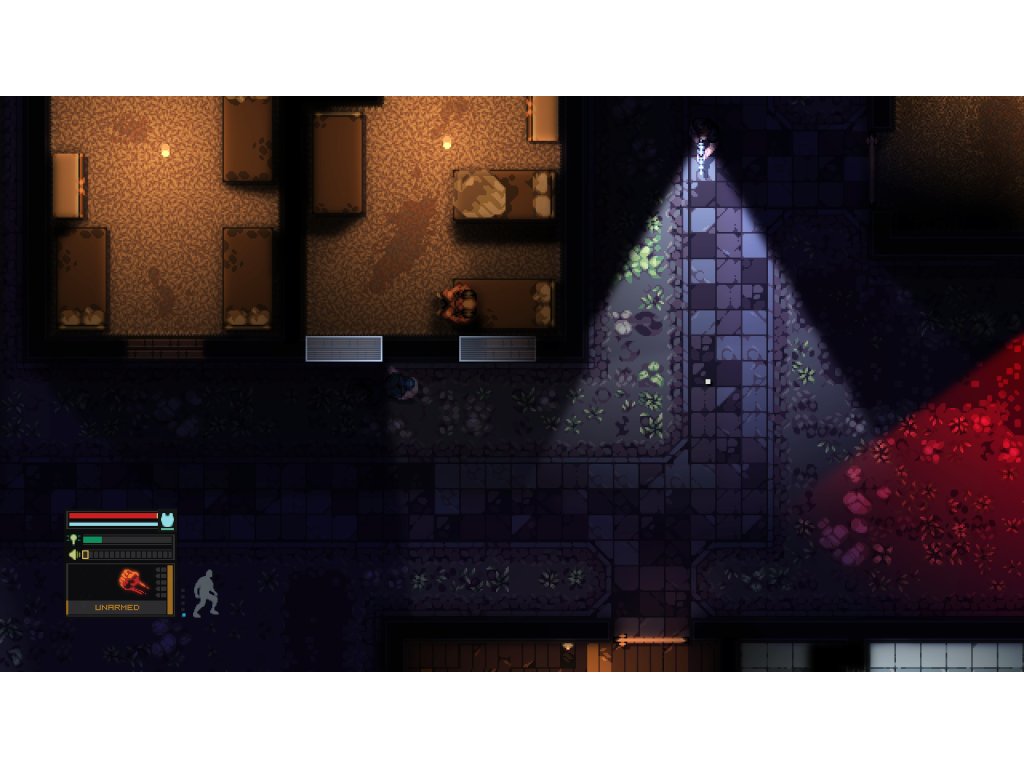 - Old-school stealth. Your visibility depends on how well-lit the environment is, and every step you take makes noise.