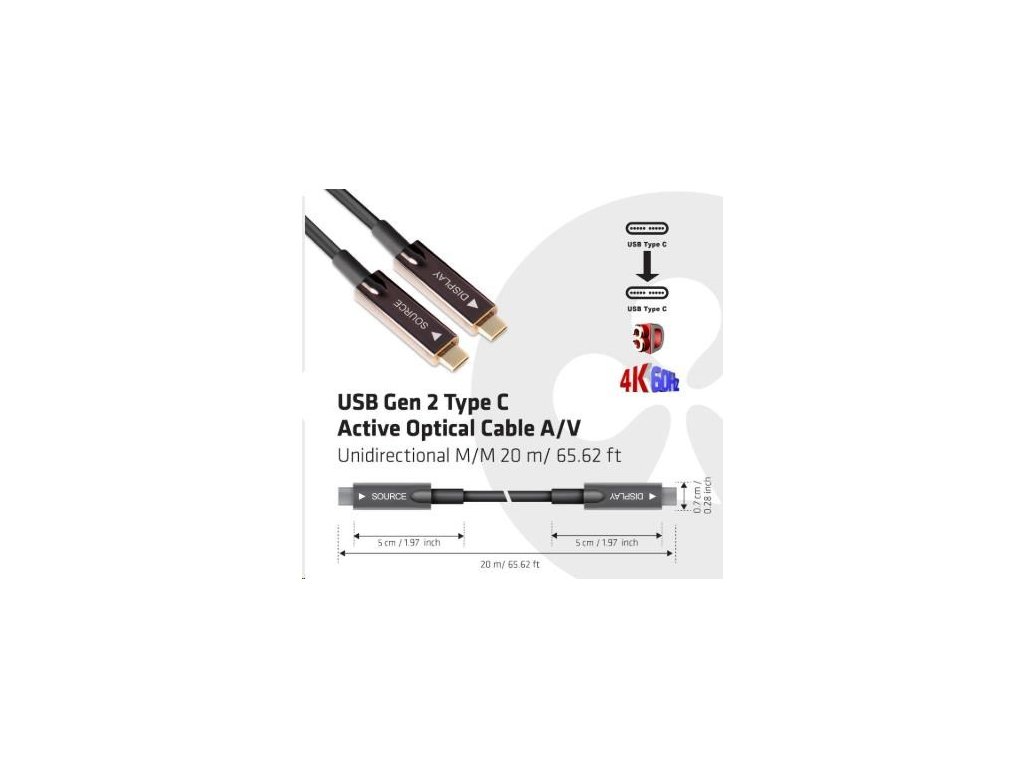 Kábel USB Club3D 3.2 Typ C Gen2, aktívny, (M/M), 20 m, optický, aktívny, jednosmerný
