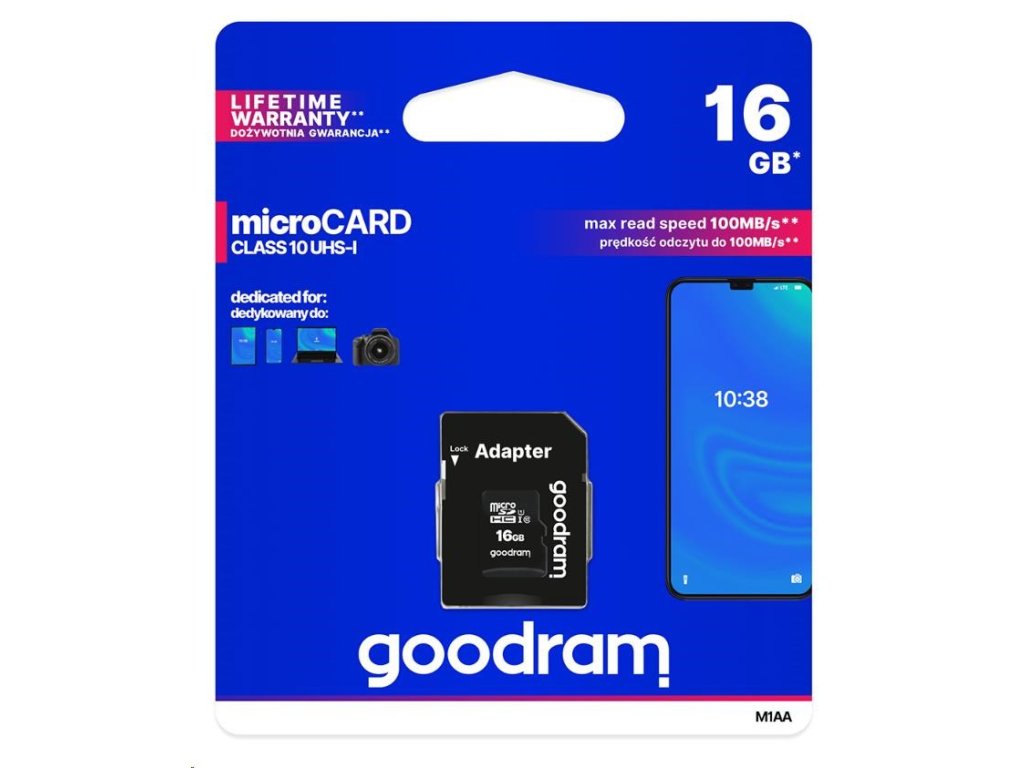 Karta GOODRAM MicroSDHC 16GB M1AA, UHS-I Class 10, U1 + adaptér