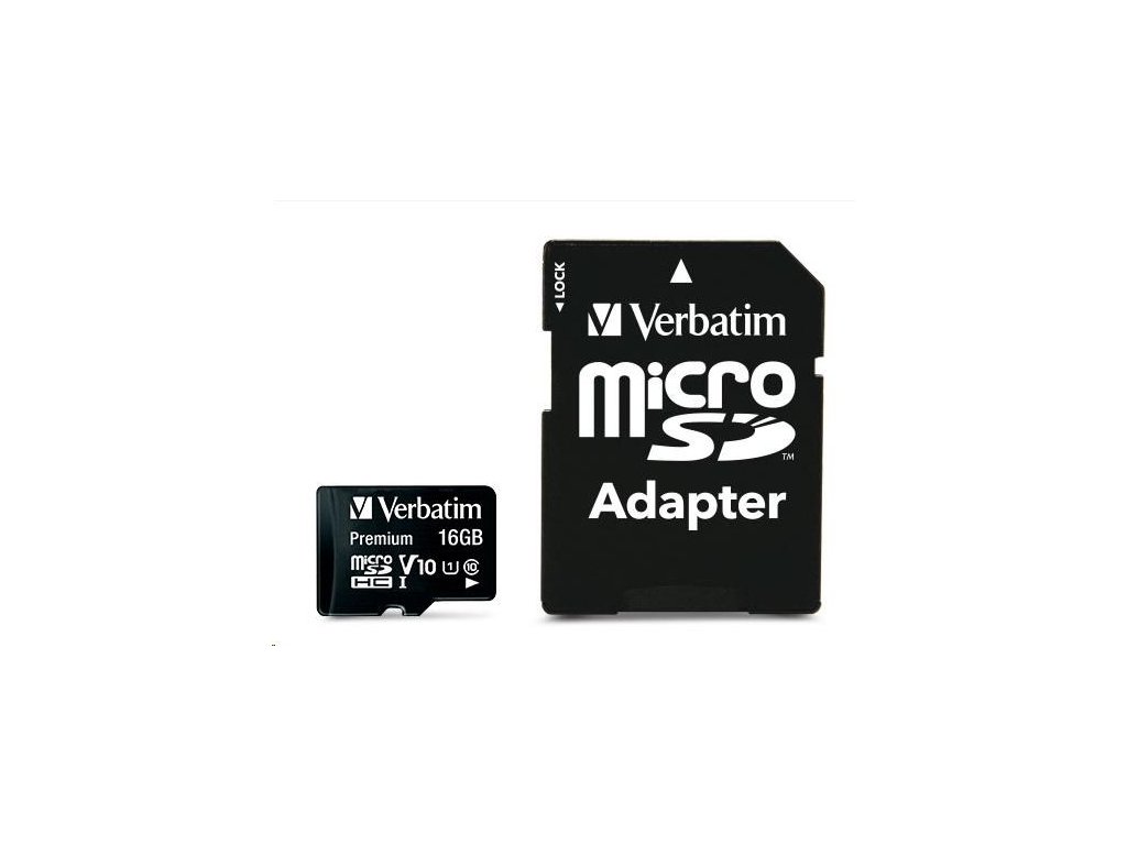 Karta VERBATIM MicroSDHC 16GB Premium, U1 + SD adaptér