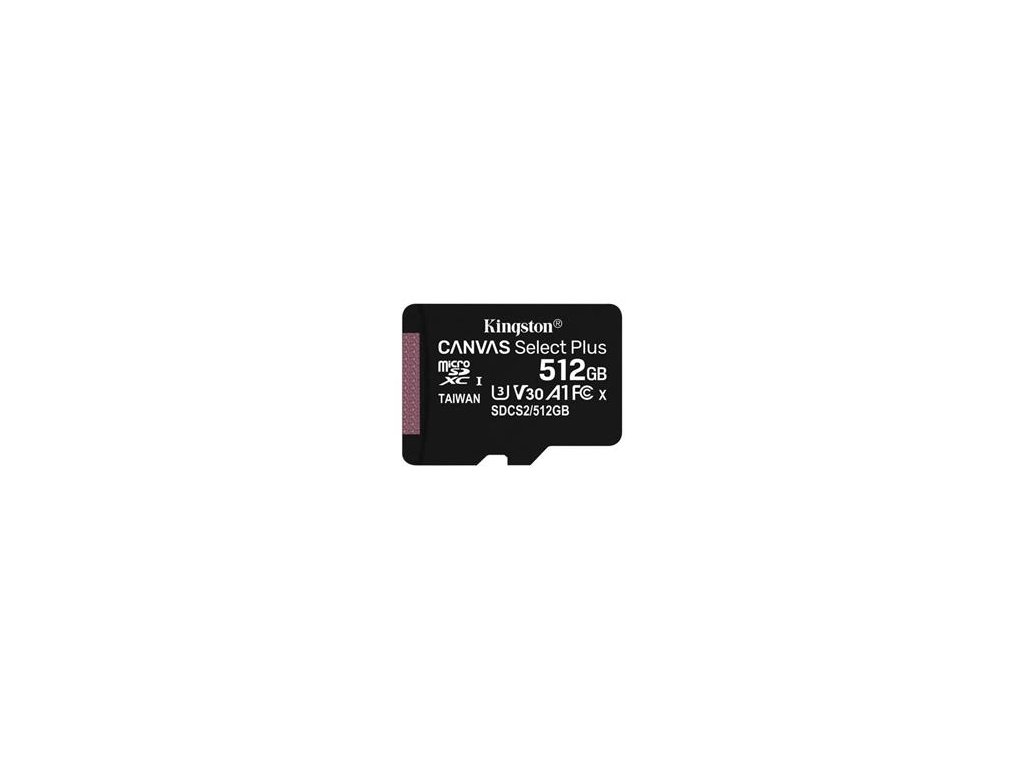 KINGSTON 512GB microSDXC CANVAS Plus Memory Card 150MB/s Read, UHS-I Speed Class, U3, V30, A1 - bez adaptéru