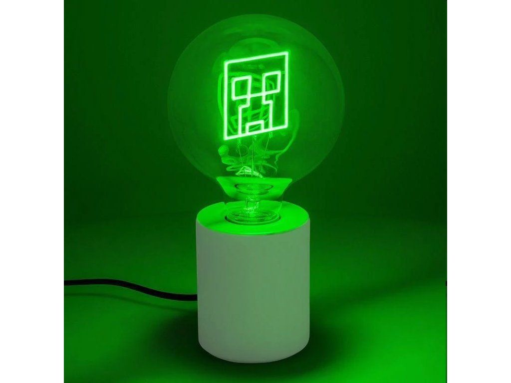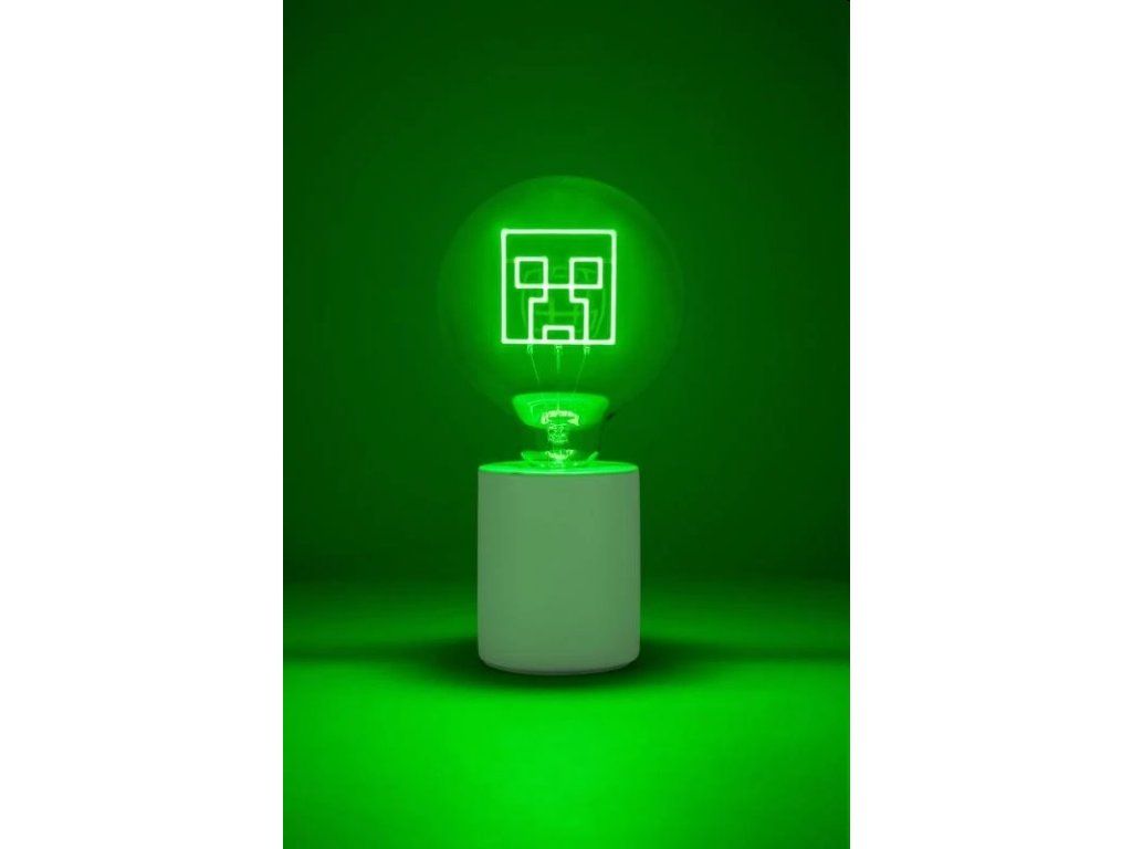 Táto jedinečná 24,3 cm vysoká lampa má keramickú základňu a dekoratívnu LED žiarovku E27, ktorej vnútorné vlákno je v tvare Creeper.