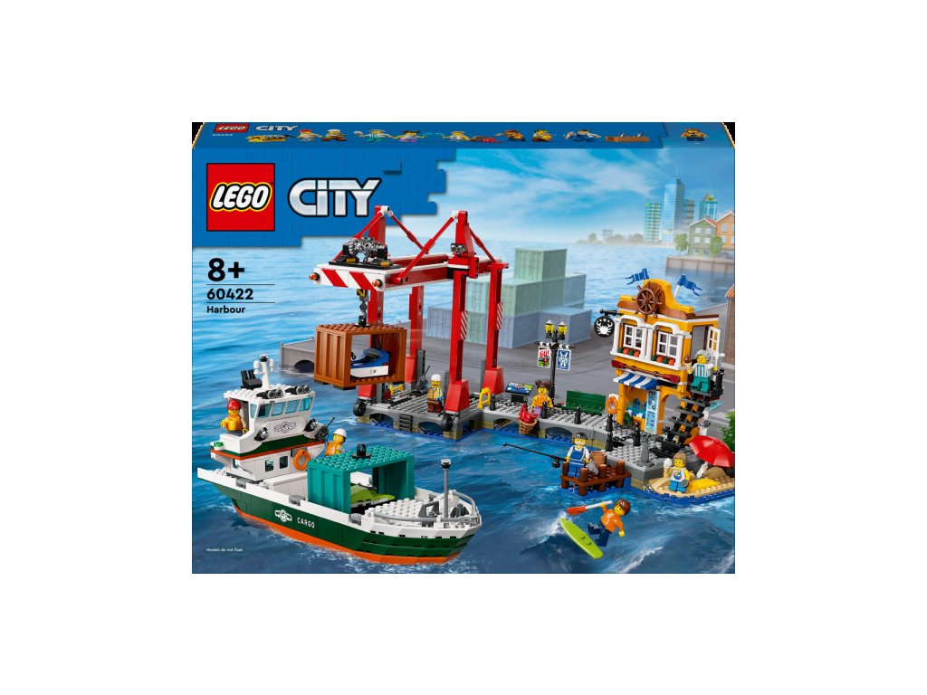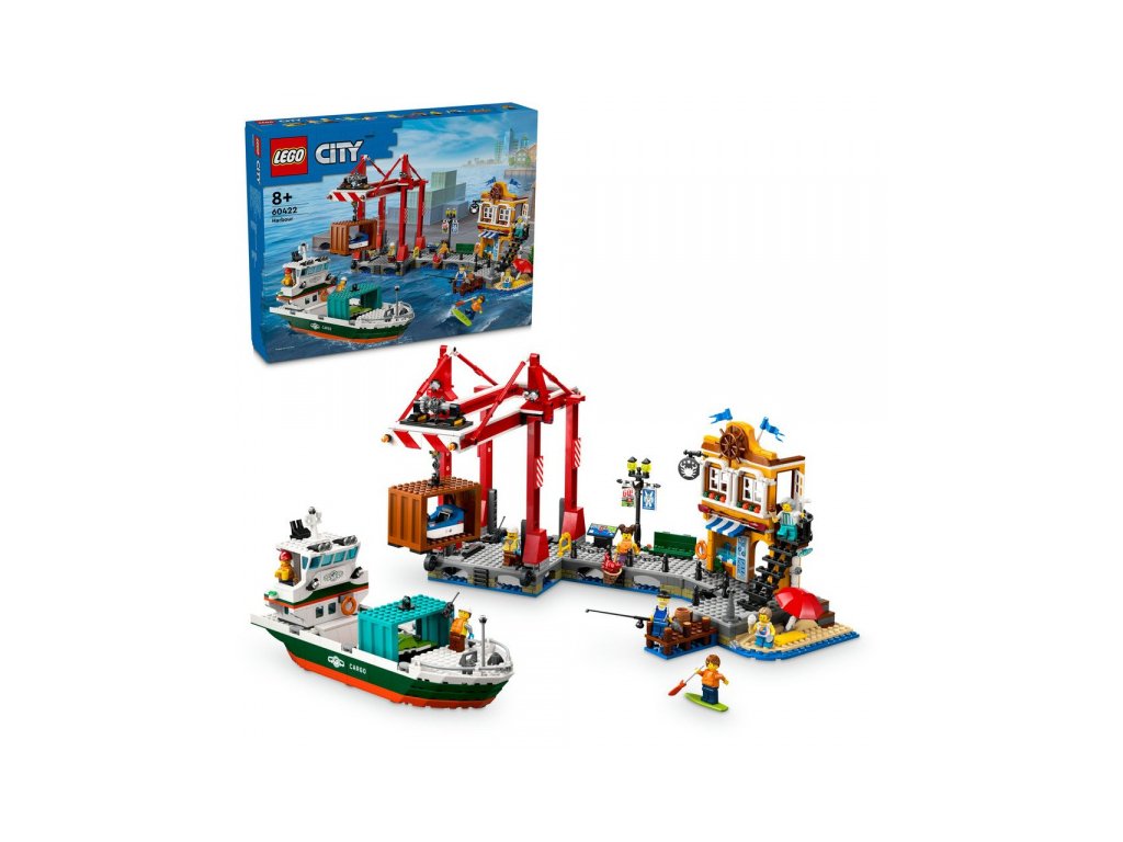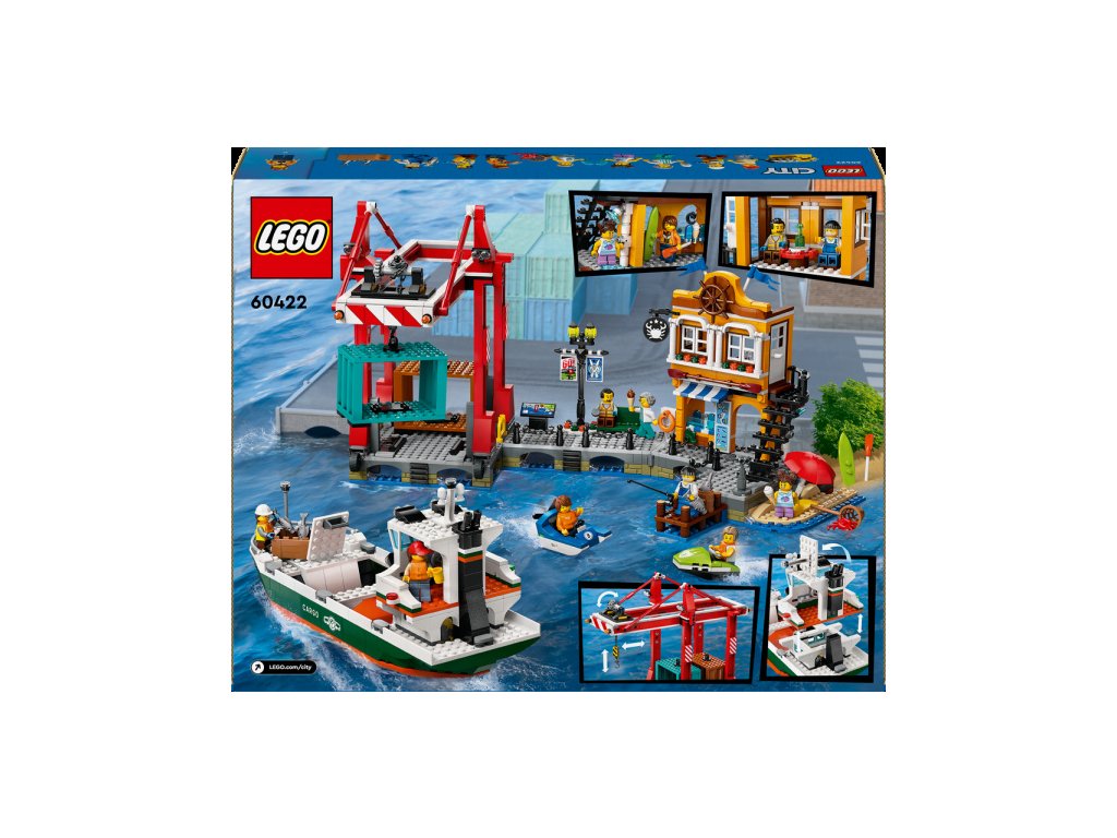 V mestečku na vás čaká reštaurácia s morskými plodmi. Určite si pochutnáte na krabích špecialitách. Potom si za odmenu dajte zmrzlinu a relaxujte na pláži. Sledujte rybárov, ktorí sa snažia uloviť úlovok, alebo nadšencov paddleboardov. Prístavné mestečko je ideálne pre milovníkov techniky aj turistiky. Do prístavu pripláva loď a čaká na vyloženie. Pomocou žeriavu vyvezte všetky kontajnery a po práci si oddýchnite.Súpravy zo série LEGO® City sú inšpirované životom v meste a ponúkajú realistické repliky a stroje spolu so zábavnými postavičkami, ktoré inšpirujú k nápaditej hre. Deti môžu skúmať svoje obľúbené pozemné, vzdušné a námorné vozidlá a pri stavaní a hraní si rozvíjať fyzické zručnosti a sebavedomie.