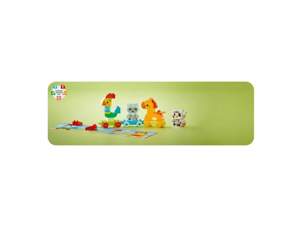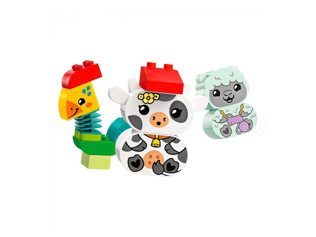 Vláčik LEGO® so 4 roztomilými zvieratkami naučí deti rozpoznávať farby a stavať podľa predlohy alebo vlastnej fantázie. Figúrka kohúta má pohyblivý krk, takže deti si užijú veľa zábavy a budú rozvíjať svoje motorické schopnosti. S vláčikom LEGO® sa deti ľahko naučia rôzne farby. Môžu priraďovať zvieratká k rovnako farebným vagónom. Malí stavitelia si užijú zostaviteľnú ovečku, kravičku, koníka a kohúta s pohyblivým krkom pre ešte väčšiu zábavu.Vďaka pestrým farbám si deti túto stavebnicu LEGO® zamilujú. Veľké kocky LEGO® DUPLO® sa ľahko držia a manipuluje sa s nimi, takže stavanie bude úžasná zábava.