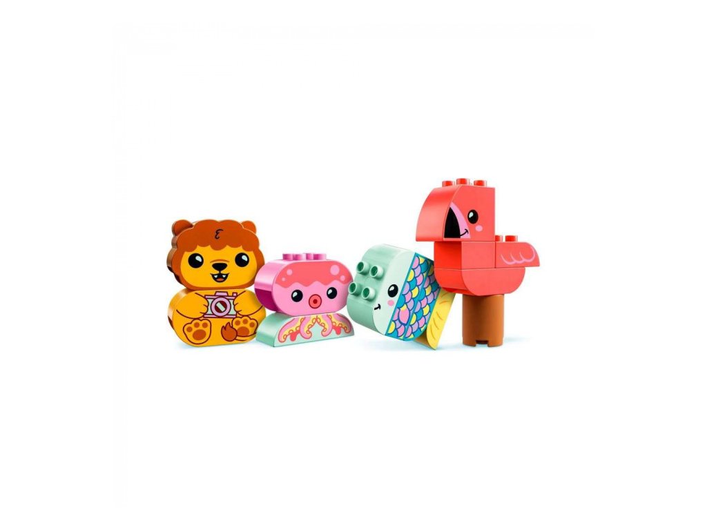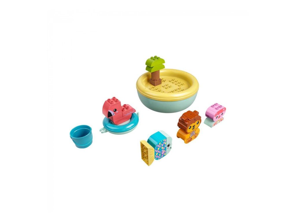 Plávajúci ostrov so zvieratami ponúka množstvo vodnej zábavy na večerné kúpanie. Po ostrove sa potuluje lev. Vo vode šantia ryby a chobotnice, okolo pláva plameniak. Ostrov sa dá odpojiť a jednoducho umyť, zvieratká sa môžu polievať vedrom. Súpravu LEGO® DUPLO® Plávajúci ostrov so zvieratkami možno spojiť so stavebnicami Plávajúca červená panda a Plávajúci vlak so zvieratkami zo série Zábava vo vani. Umývanie sa tak stane ešte zábavnejším. Stavebnice sú ideálnym spôsobom, ako predstaviť LEGO® malým deťom.Vďaka pestrým farbám si deti túto stavebnicu LEGO® zamilujú. Veľké kocky LEGO® DUPLO® sa ľahko držia a manipuluje sa s nimi, takže stavanie je úžasná zábava.