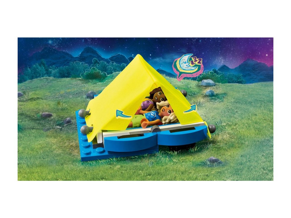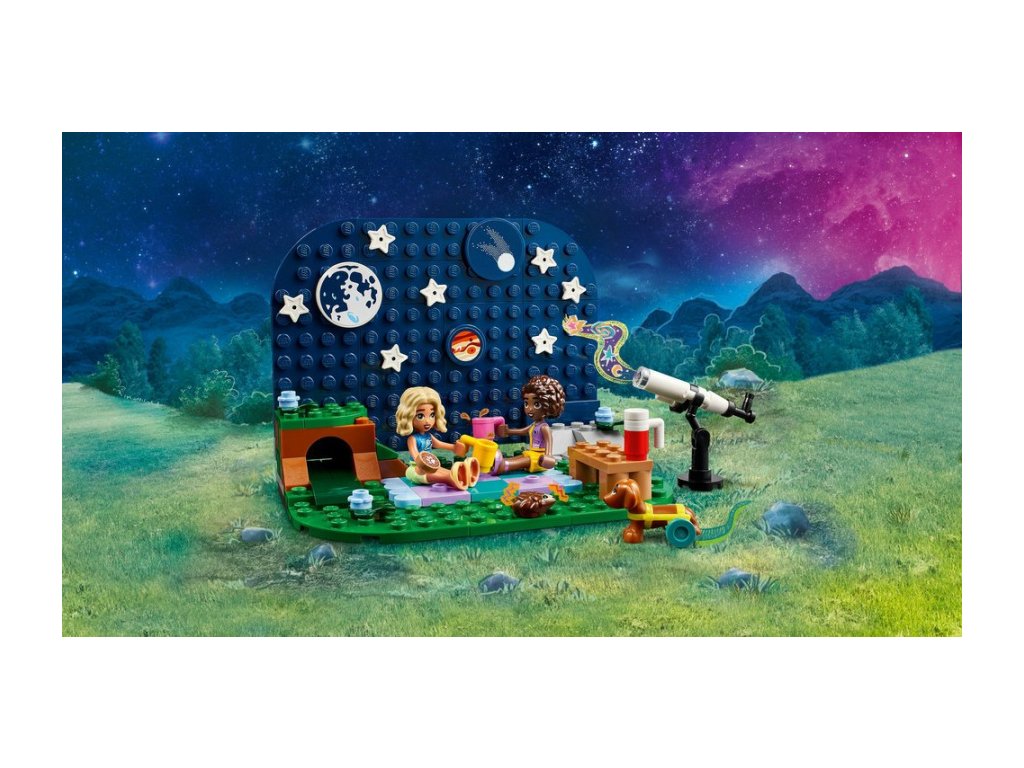 Ak si s Novou a Aliou pozriete všetky súhvezdia, ktoré sú momentálne viditeľné na nočnej oblohe, nasadnite do stanu na streche auta. Dnešná noc je naozaj nádherná! Môžete sa tešiť na vozidlo 4×4 s karavanom a samoskladacím stanom, skladací teleskop a množstvo doplnkov, ako sú poháre, sušienky, pochúťky pre psov, ďalekohľad, baterka, tablet a obrázky planét a hviezd. Čaká vás skvelá zábava.Stavebnice LEGO® Friends sú najlepšie hračky pre menšie deti, ktoré podporujú skúmanie a záujem s pomocou 5 dievčat z mestečka Heartlake.