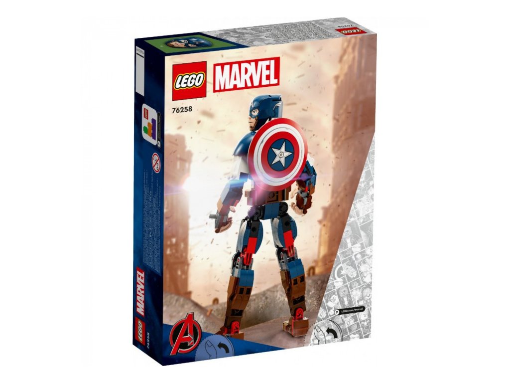 S postaviteľnou figúrkou LEGO® Marvel 76258 Captain America si môžu malí superhrdinovia postaviť 25 cm vysokú postavu, ktorú poznajú z príbehov Marvel Avengers. Kapitán Amerika má pohyblivé ramená, ruky, nohy a bedrové kĺby. Figúrka LEGO® je dokonale polohovateľná, takže ju môžeš postaviť presne do takej polohy, akú potrebuješ. A samozrejme má aj typický štít, ktorý sa dá pripevniť na ruky alebo chrbát.Objav svet filmových hrdinov so stavebnicou LEGO® Super Heroes! S figúrkami Spider-Mana, Ironmana, Supermana, Batmana, Hulka a ďalších superhrdinov si môžeš dokonca postaviť vlastný komiks a vžiť sa do úloh svojich obľúbených postáv. Preskúmaj svet LEGO® superhrdinov a prevezmi úlohy postáv ako Spiderman, Ironman, Superman, Batman a Hulk.