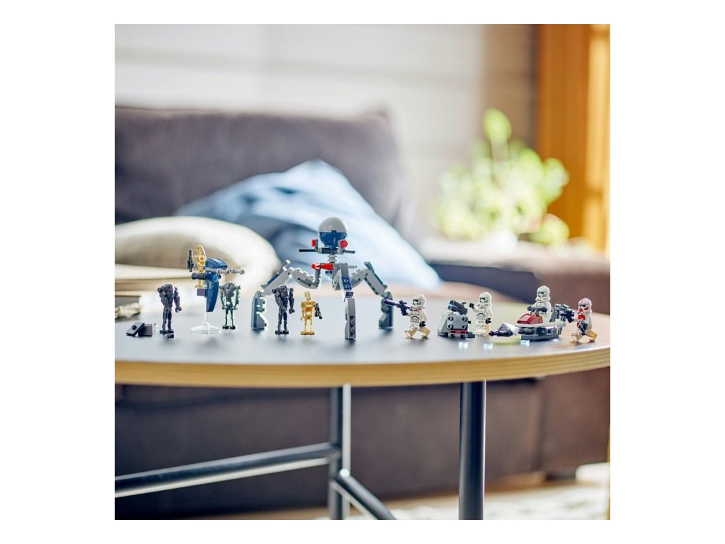 Zamierte na super bojových droidov z obrannej pozície a uchopte štíty, ktoré vám umožnia bojovať zblízka. Kto nakoniec vyhrá bitku Klonových vojen? To bude záležať len a len na vás. Môžeš sa tešiť na speederovú motorku s vystreľovačmi pre 2 klonových vojakov a zostaviteľné speederové vozidlo STAP určené pre bojového droida. K dispozícii je aj tridroid s 3 vyhadzovačmi a obranná stanica s vyhadzovačom. Čaká ťa skvelá akcia a zábava!Stavebnica LEGO® Star Wars™ je skvelá zábava pre malých aj veľkých fanúšikov tejto nesmrteľnej ságy. V okamihu sa prenesiete do legendárneho sveta Hviezdnych vojen, kde môžete bojovať proti Temnej strane Sily. Čaká na vás veľa akcie a dobrodružstva!