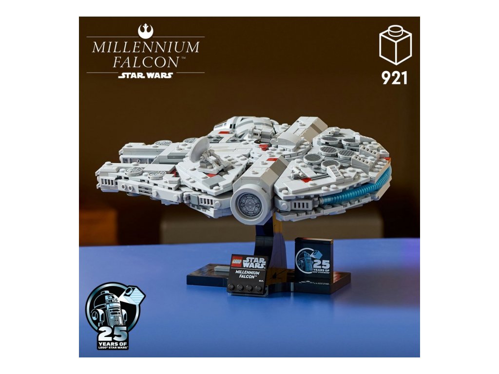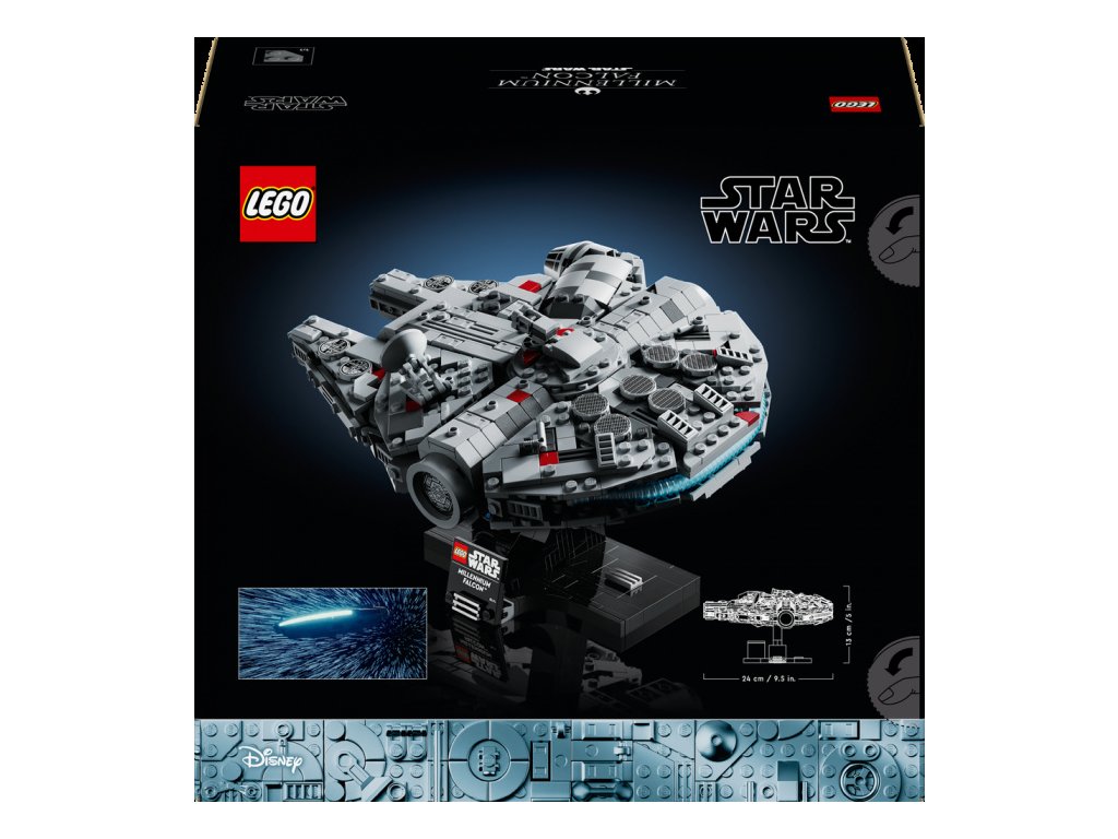 Najznámejšia vesmírna loď na svete vám urobí radosť nielen počas stavania a hrania, ale aj na výstave. Vďaka špeciálnej základni ju možno umiestniť v dynamickom uhle ako za letu. Tento pôsobivý kúsok musí mať doma každý fanúšik Star Wars. Rad LEGO® Star Wars™ oslavuje 25 rokov! Osláv toto výročie tým, že si postavíš legendárny Millennium Falcon, ako si ho pamätáš z filmu Star Wars: Nová nádej. Vesmírna loď je vybavená kokpitom, satelitnou anténou a delami a zaujme svojím detailným spracovaním.LEGO® Star Wars™ je skvelá zábava pre malých aj veľkých fanúšikov tejto nesmrteľnej ságy. V okamihu sa prenesiete do legendárneho sveta Hviezdnych vojen, kde môžete bojovať proti Temnej strane Sily. Čaká na vás veľa akcie a dobrodružstva!