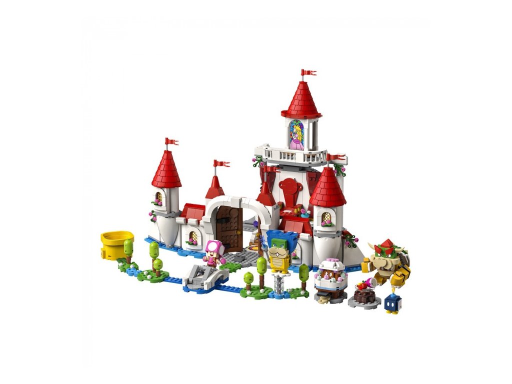 Zažite nespočetné množstvo zábavných momentov v zámku princeznej Peach! Zhoď Ludwiga z oblakov, oprav pokazený most a pozdrav sa s Toadette. Pokúste sa tiež odhaliť akčný prvok ukrytý za obrazom. Ak porazíš Bob-omby, získaš ďalší bonus. Môžeš si tiež pochutnať na chutnom koláči, ale musíš si dať pozor na Goombu vo vnútri. Potom začni zbierať fialové ovocie. Nezabudni naskočiť na časovú kocku, aby si našiel a porazil Bowsera, ktorý sa skrýva za trónom. V Broskyňovom hrade na teba čaká množstvo akcie, zábavy a dobrodružstva.Stavanie bude ešte zábavnejšie vďaka intuitívnemu návodu Instructions PLUS v bezplatnej aplikácii LEGO® Super Mario™. Obsahuje digitálne nástroje na prezeranie, inšpiratívne tipy a slúži ako bezpečná platforma na zdieľanie nápadov.