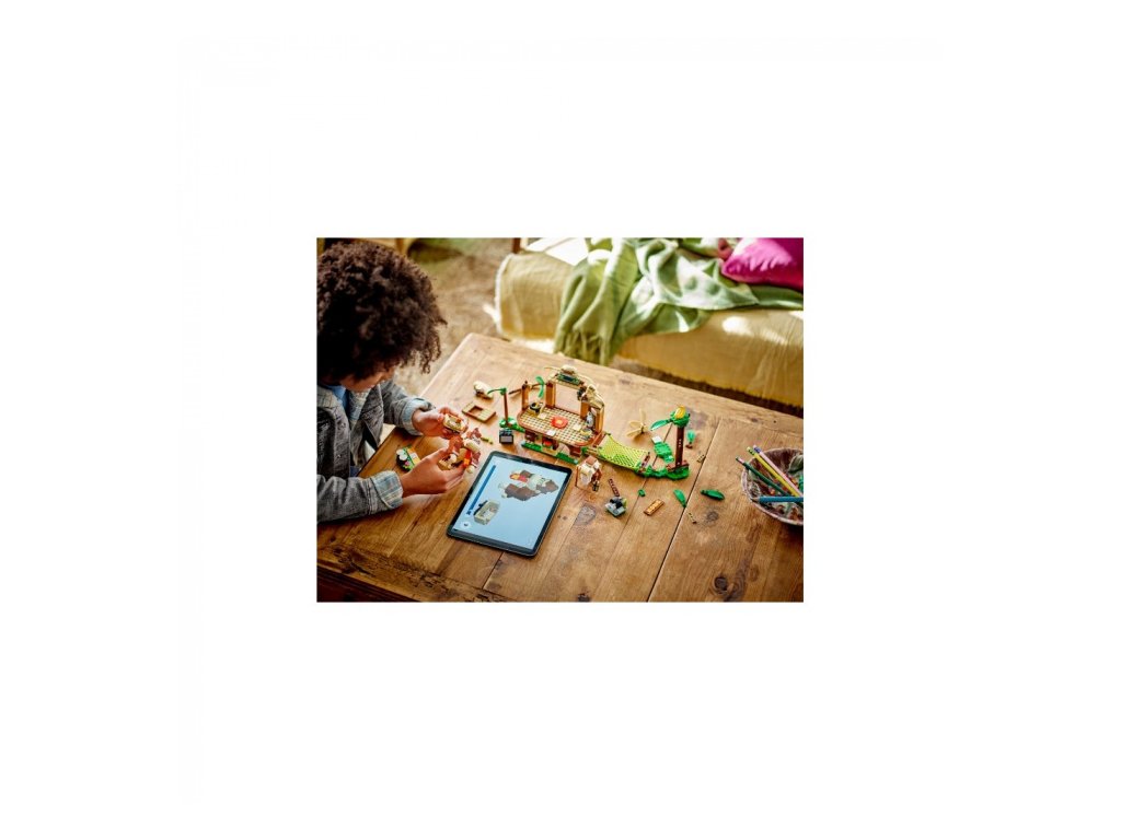 S rozširujúcou sadou Donkey Kong Treehouse si môžete postaviť farebnú úroveň džungle a hrať rôzne príbehy. Domček ponúka množstvo autentických detailov, ako je zostaviteľný televízor, rádio a tajná skrýša. Pokúste sa nájsť tajnú skrýšu aj vy! Vyskočte Donkey Kongovi na chrbát, dupnite a rozbíjajte veci. Straste banán z palmy a dajte ho Donkey Kongovi, určite si ho vychutná. Potom navštív Cranky Konga, možno od neho získaš nejaké mince. Môžeš si tiež zahrať na Kongových bubnoch alebo si oddýchnuť v hojdacej sieti. Užijete si veľa zábavy.Stavanie bude ešte zábavnejšie vďaka intuitívnemu návodu Instructions PLUS v bezplatnej aplikácii LEGO® Super Mario™. Obsahuje digitálne nástroje na prezeranie, inšpiratívne tipy a slúži aj ako bezpečná platforma na zdieľanie nápadov.