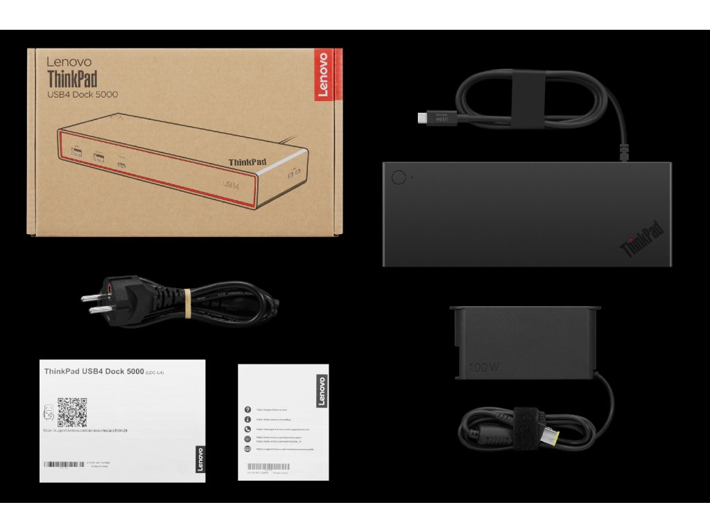 LENOVO ThinkPad USB4 Dock 5000 - PD100W (2x DP, 1x HDMI, 1x RJ45, 2x USB-C,4xUSB-A adapter) pripojit max 4x LCD