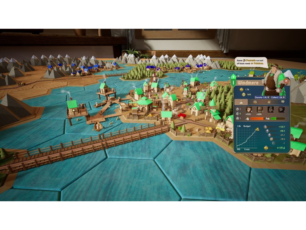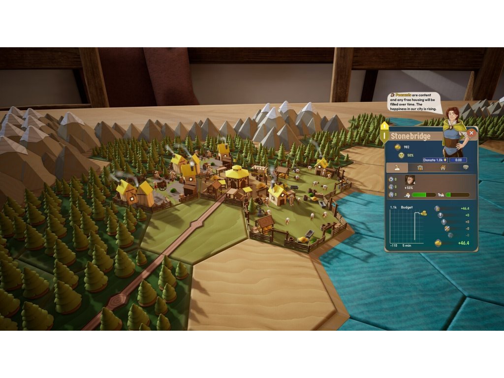Build a network of cities that produce and trade resources, upgrade your castle, and protect the cities from cheeky bandits. Tinker with the economy at your own pace, and watch the charming wooden world grow into a lively and thriving kingdom.