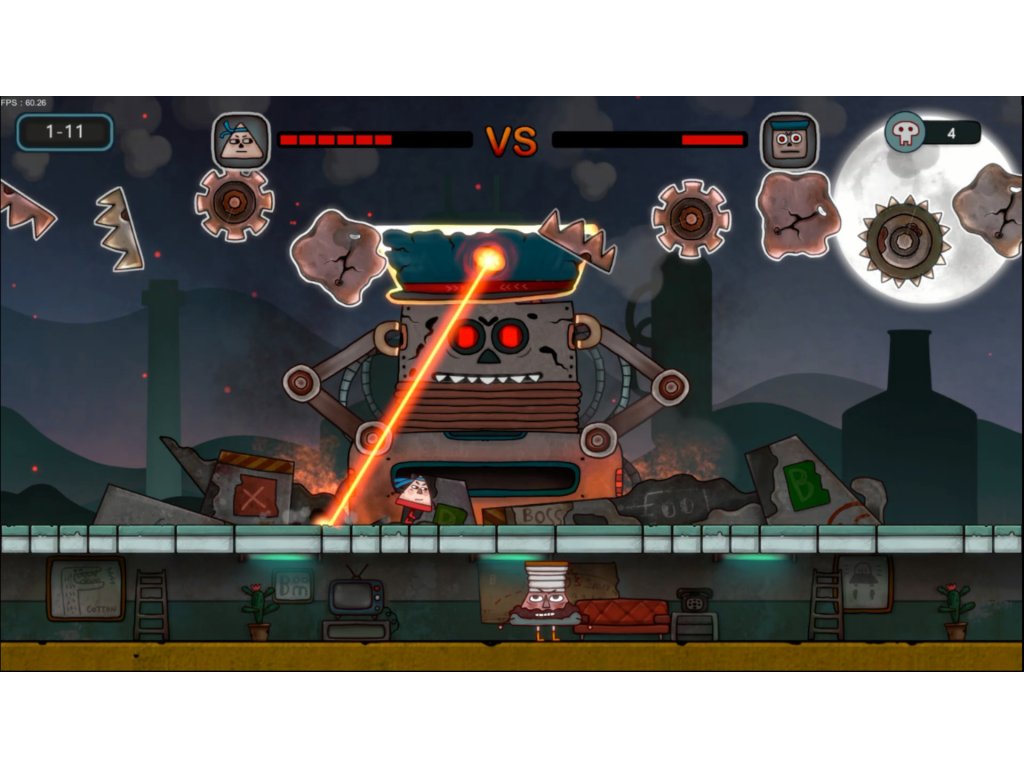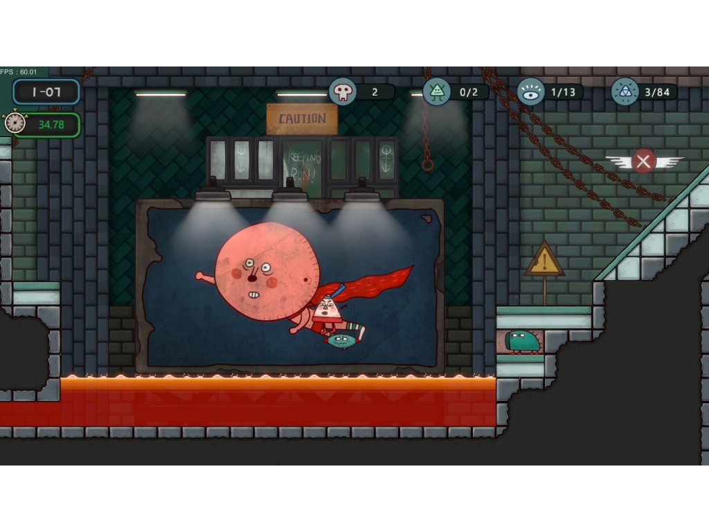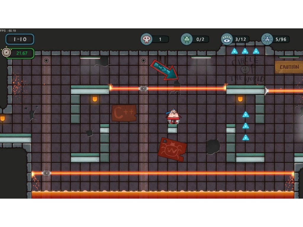 The game is a pure 2D platformer with double jump. The gameplay boils down to running and jumping, and the controls feel perfect with both keyboard and controller. It is easy to get started, but soon you will find death is unavoidable in the game. Luckily, there is no cost of dying so you can always start again immediately. The game focuses on fun, rather than making it extremely difficult. Usually there are multiple checkpoints in a level, and you may even add some checkpoints with hard-earned diamonds you collect. Every few levels, you will meet some funny and well-designed bosses that will put your skills to the test!